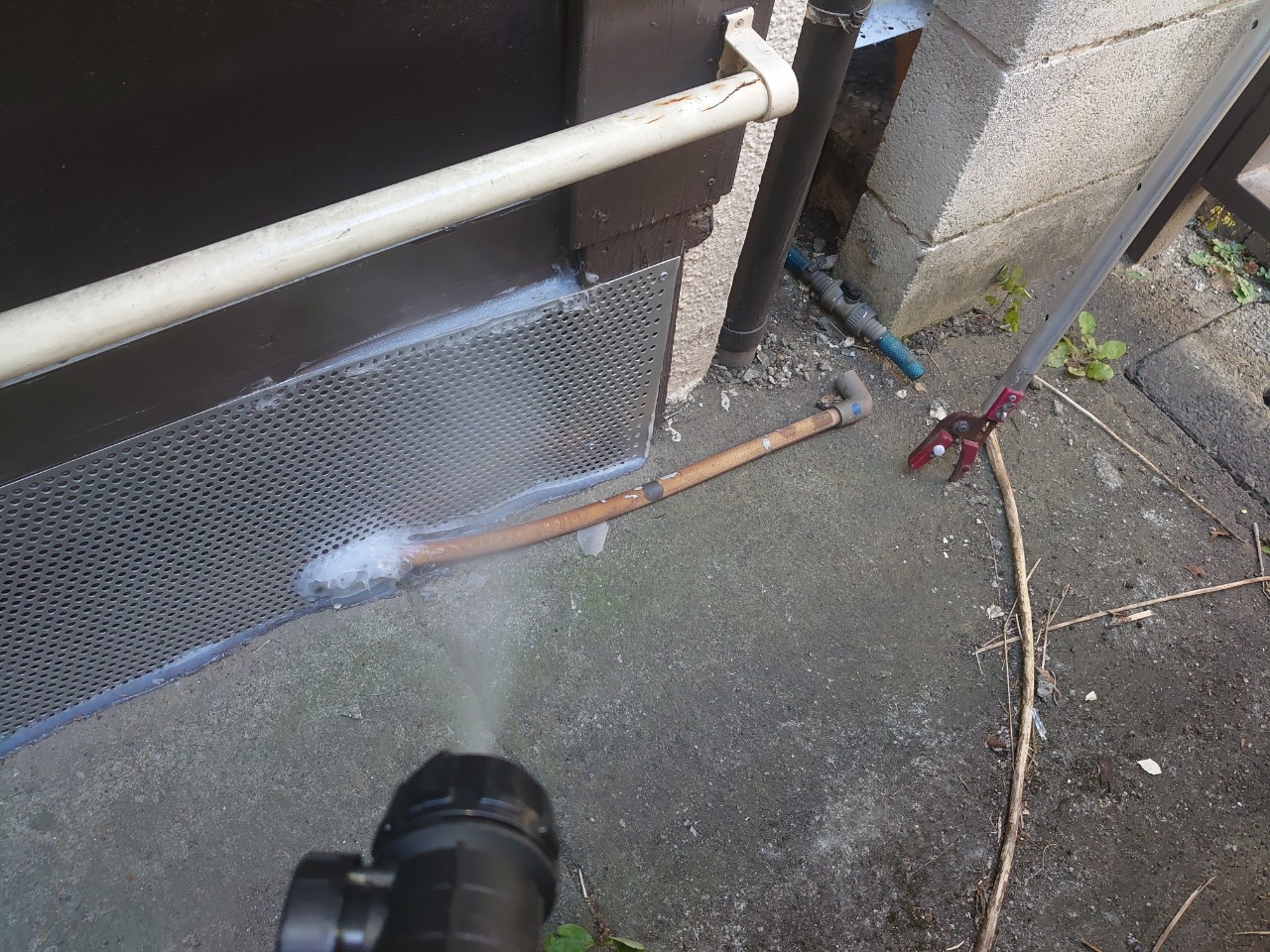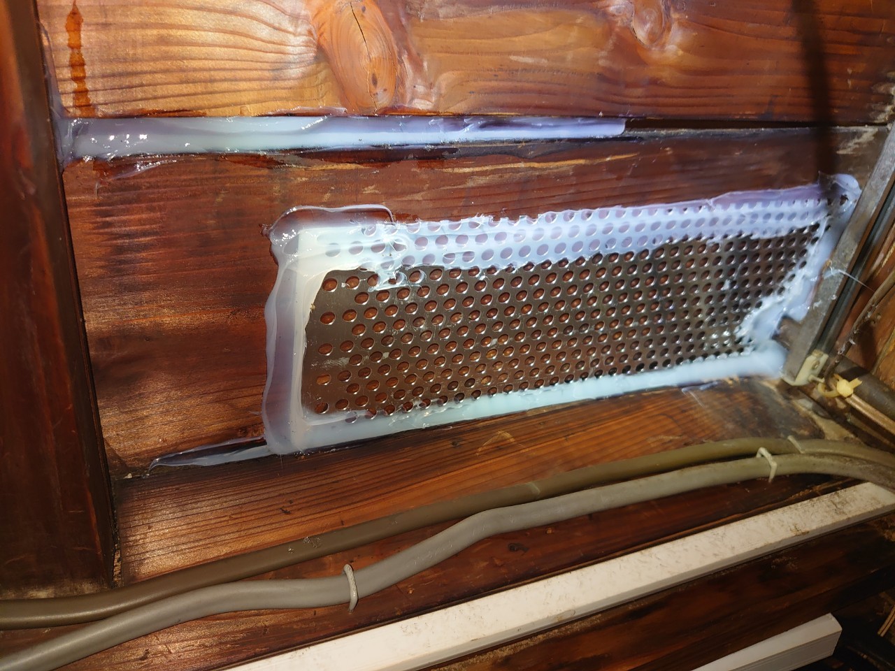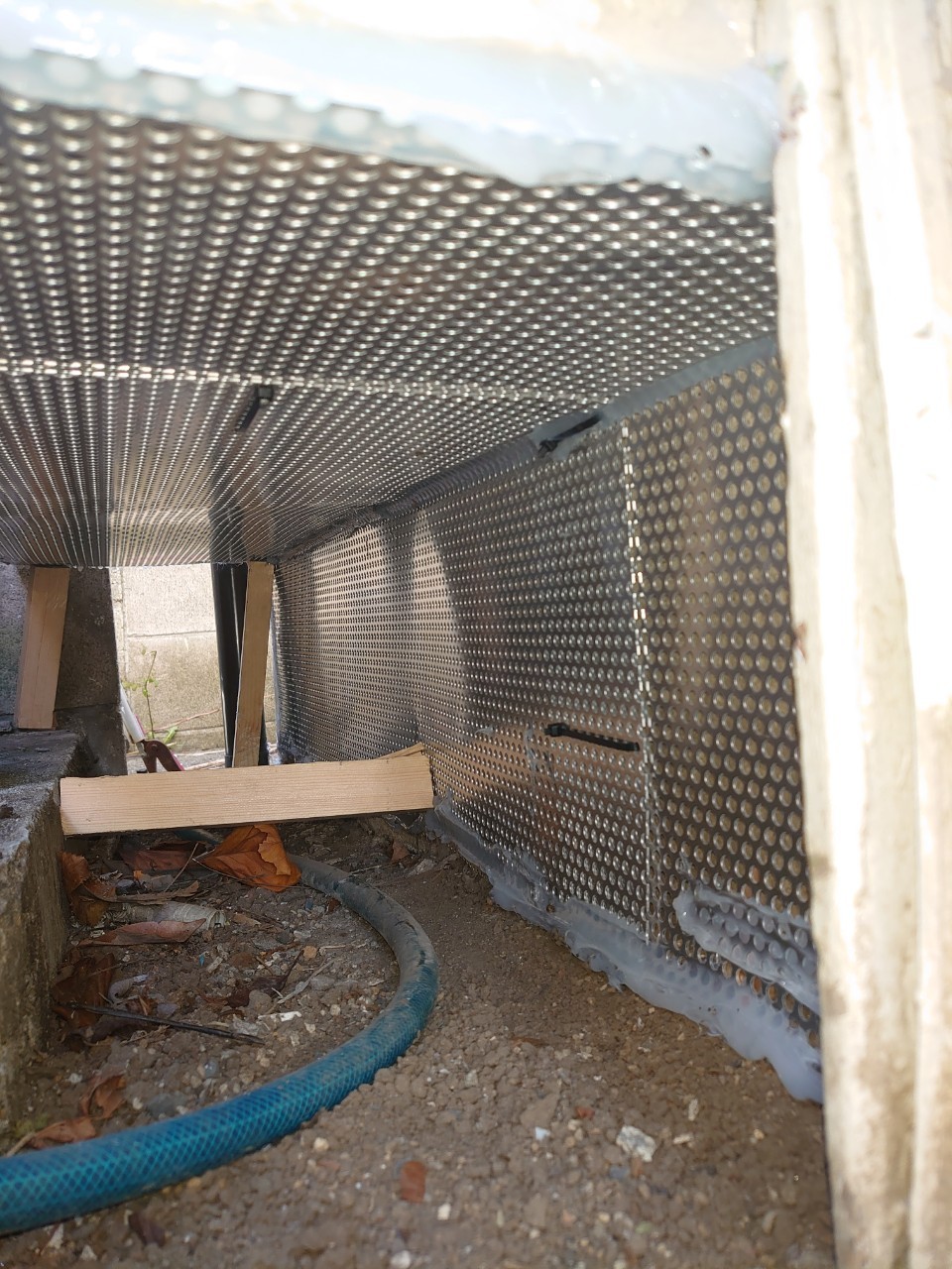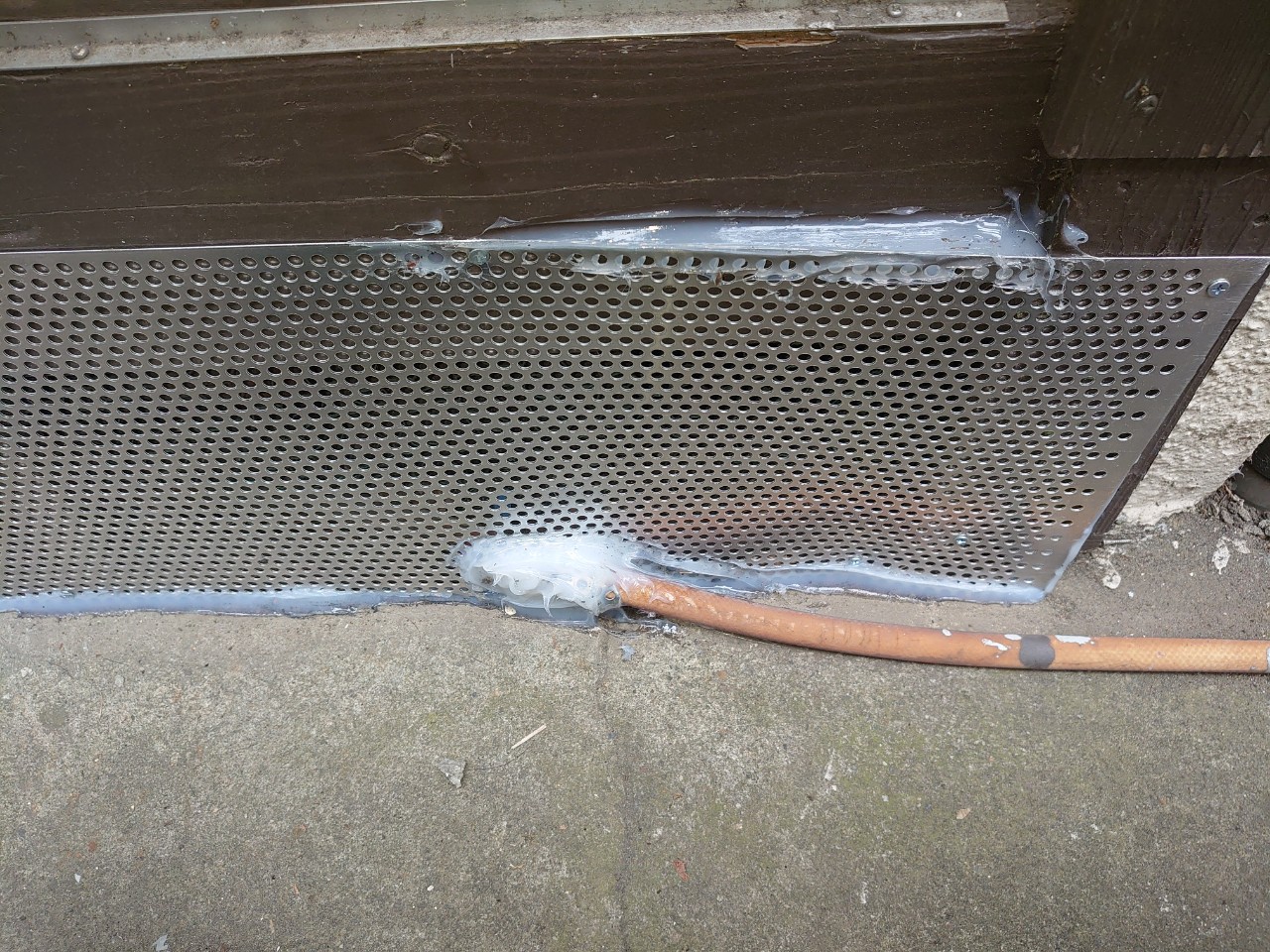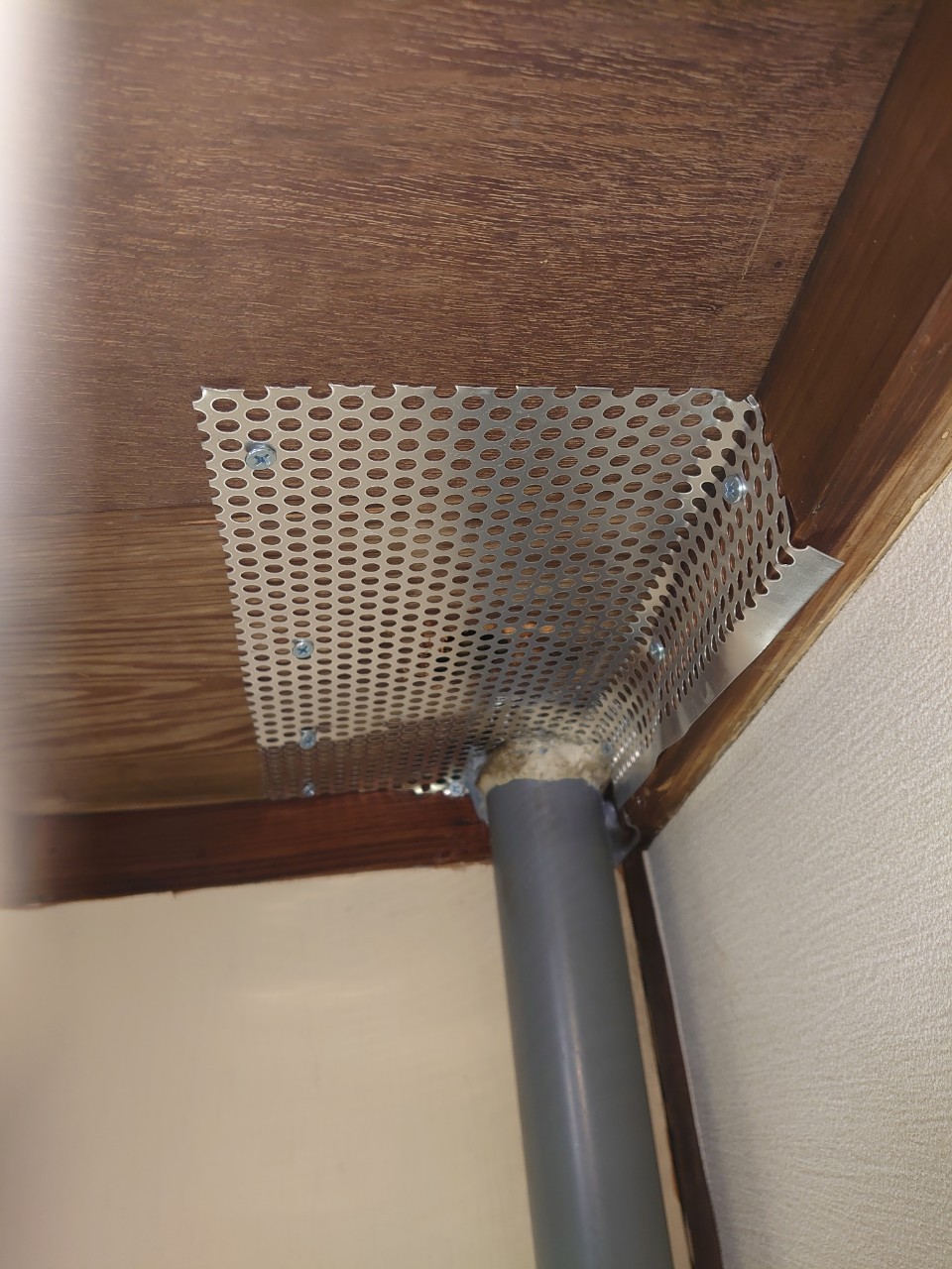 続いて、ネズミの再侵入を防ぐために、パンチングメタルや金網、コーキング剤などを用いて侵入経路の封鎖を行います。