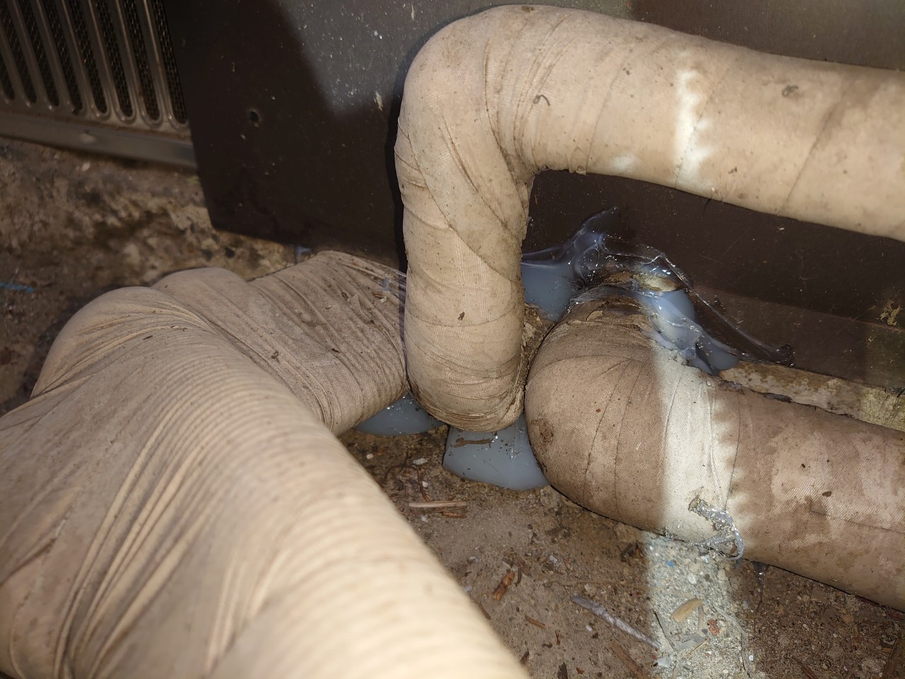 エアコン配管の隙間や室内の隙間、床下通風口等がネズミの侵入経路と疑われました。