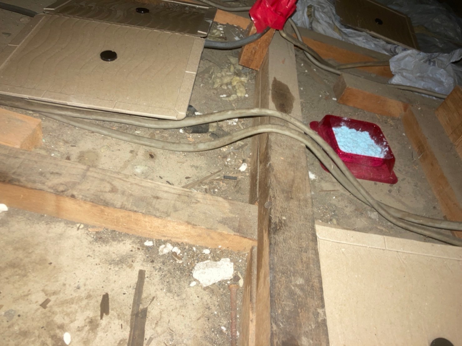 封鎖作業の後は、糞清掃や殺菌・消毒、マーキング消臭、点検口作成、毒エサ・トラップ設置といった残りの行程を順序良く行い、終了です。