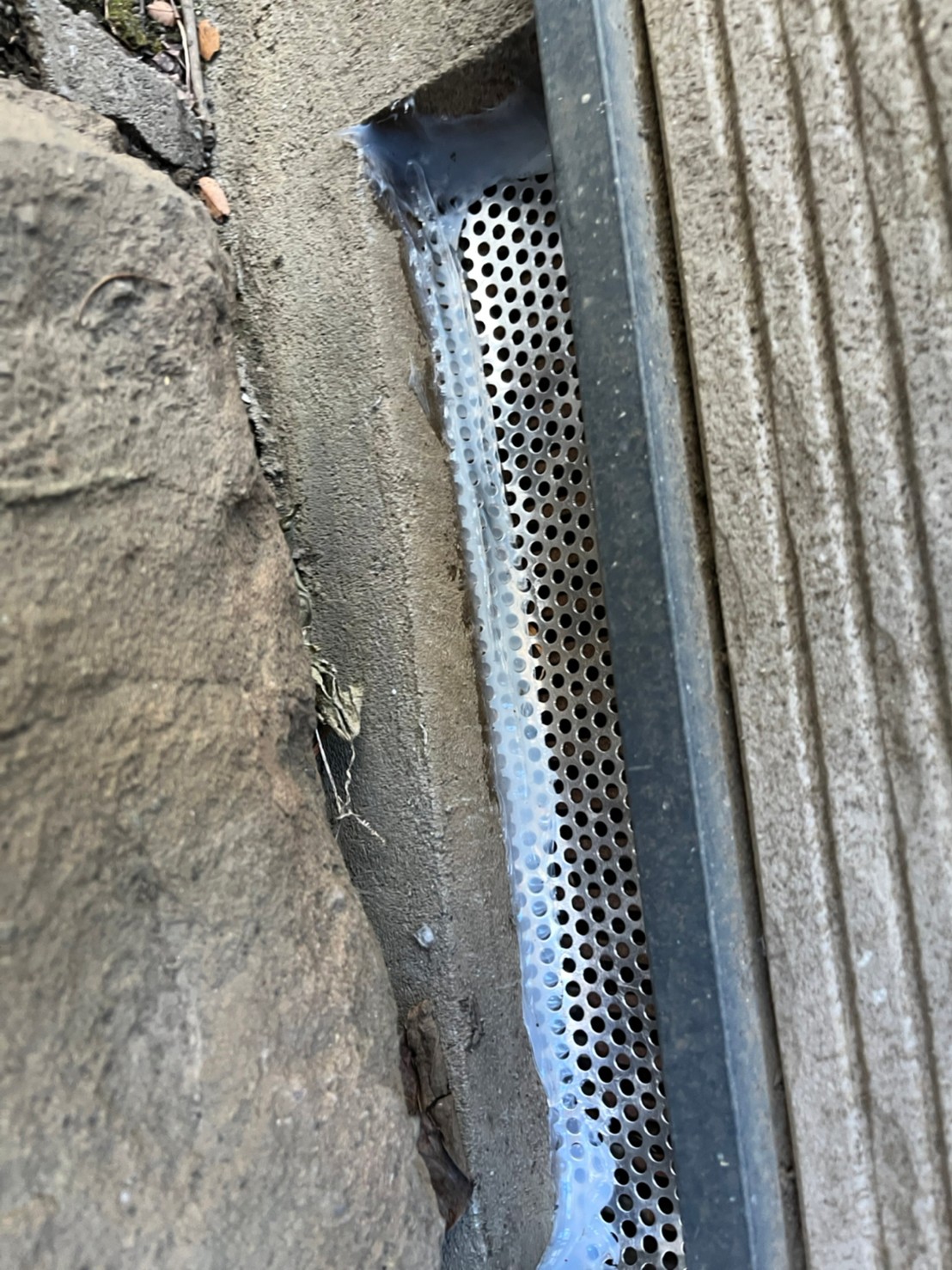 続いて、ネズミの再侵入を防ぐために、パンチングメタルや金網、コーキング剤などを用いて侵入経路の封鎖を行います。