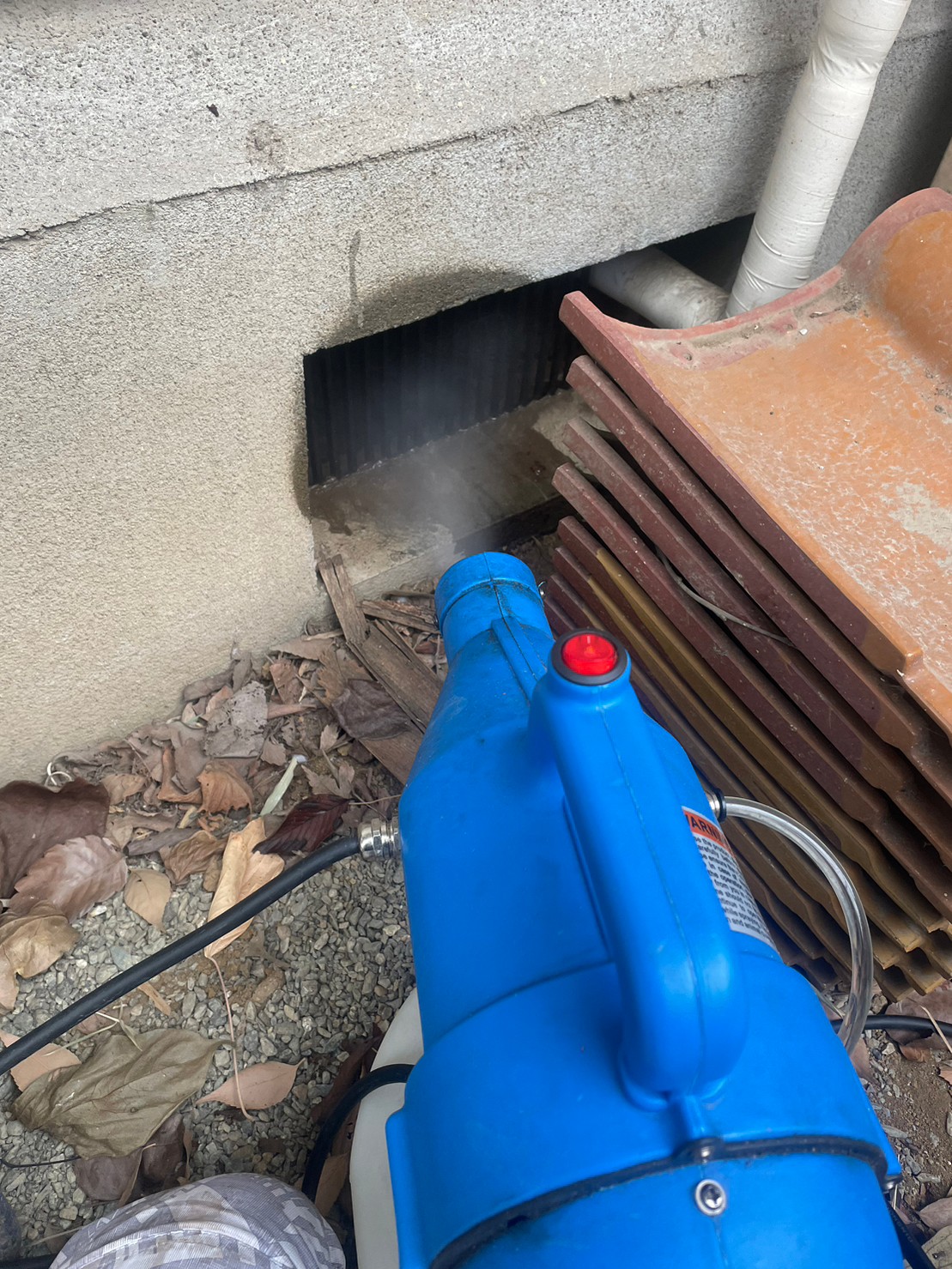 まずは、ネズミの巣がある場所に点検口を作成し、燻煙剤と呼ばれる薬剤を天井裏や床下に投入することで、ネズミを追い出していきます。