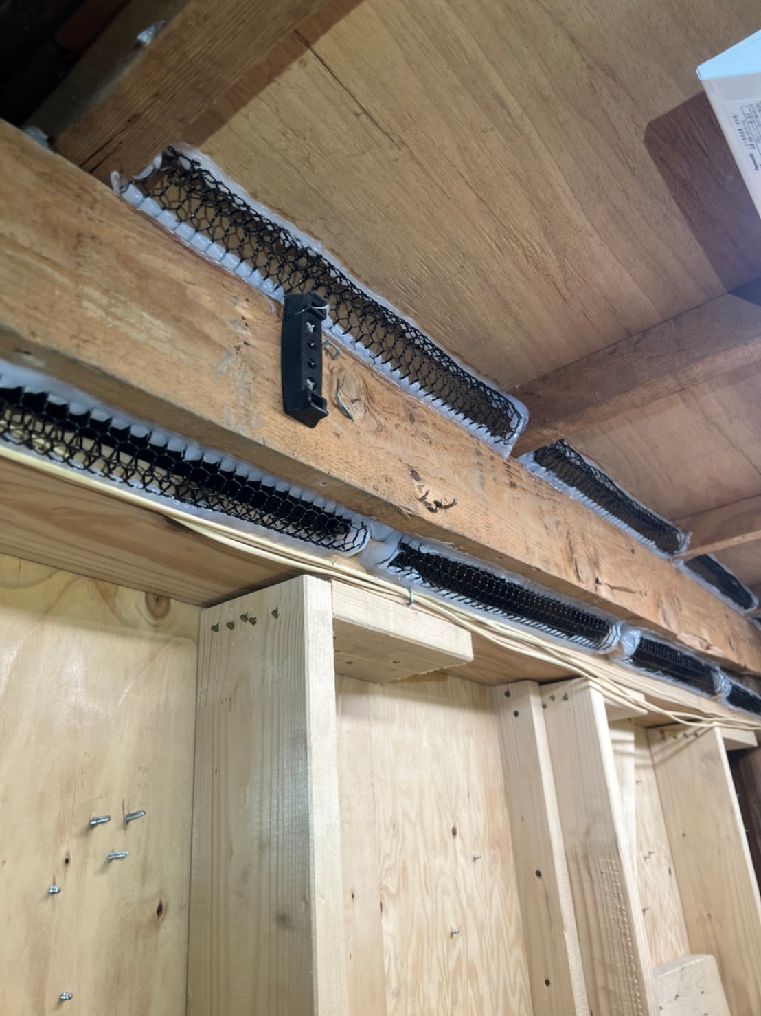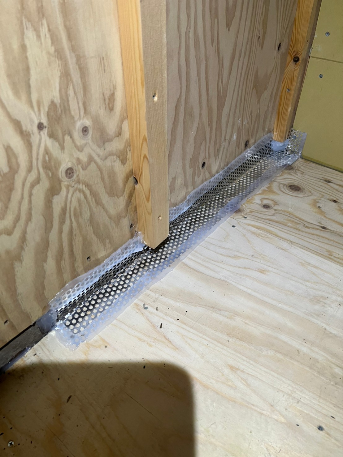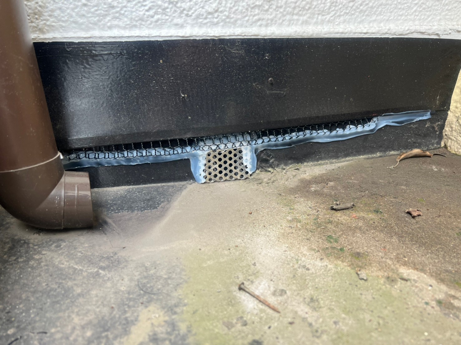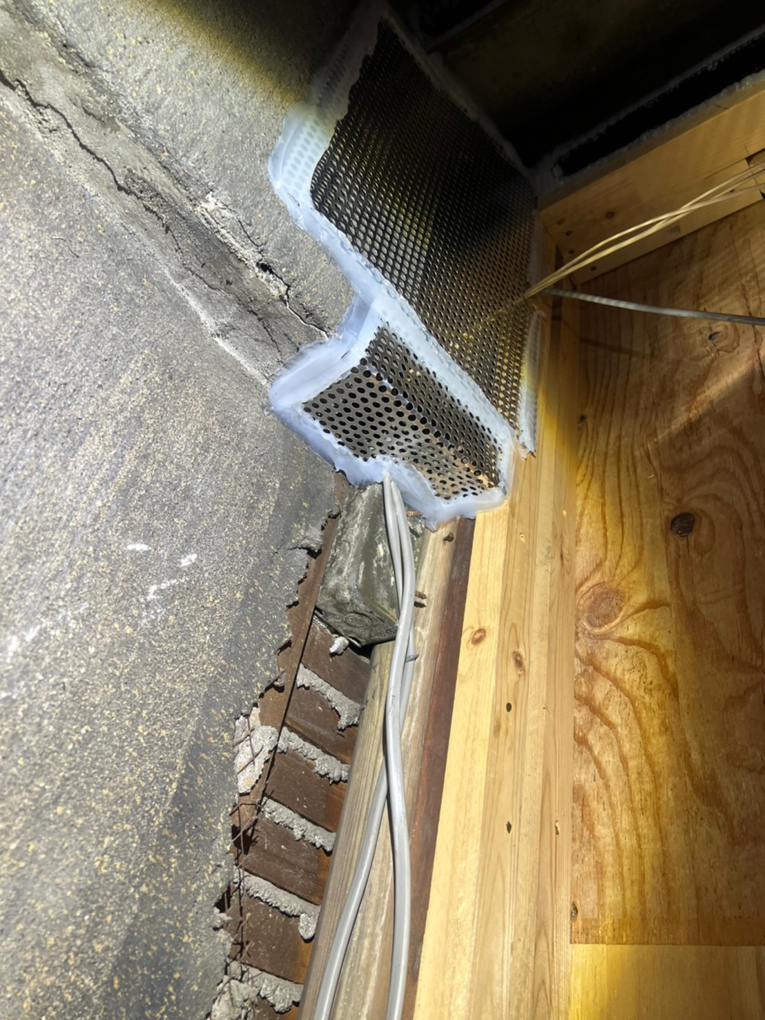 続いて、ネズミの再侵入を防ぐために、パンチングメタルや金網、コーキング剤などを用いて侵入経路の封鎖を行います。