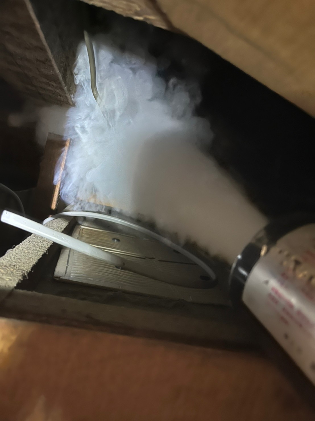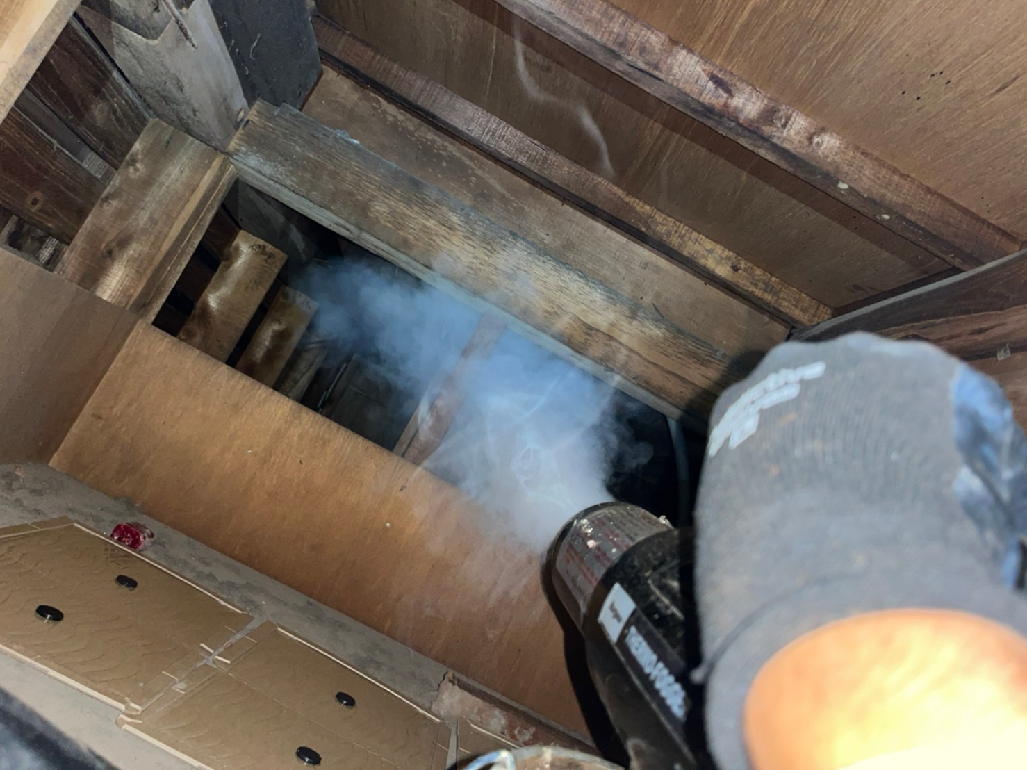 まずは、燻煙剤と呼ばれる薬剤を天井裏や床下に投入することで、ネズミを追い出していきます。