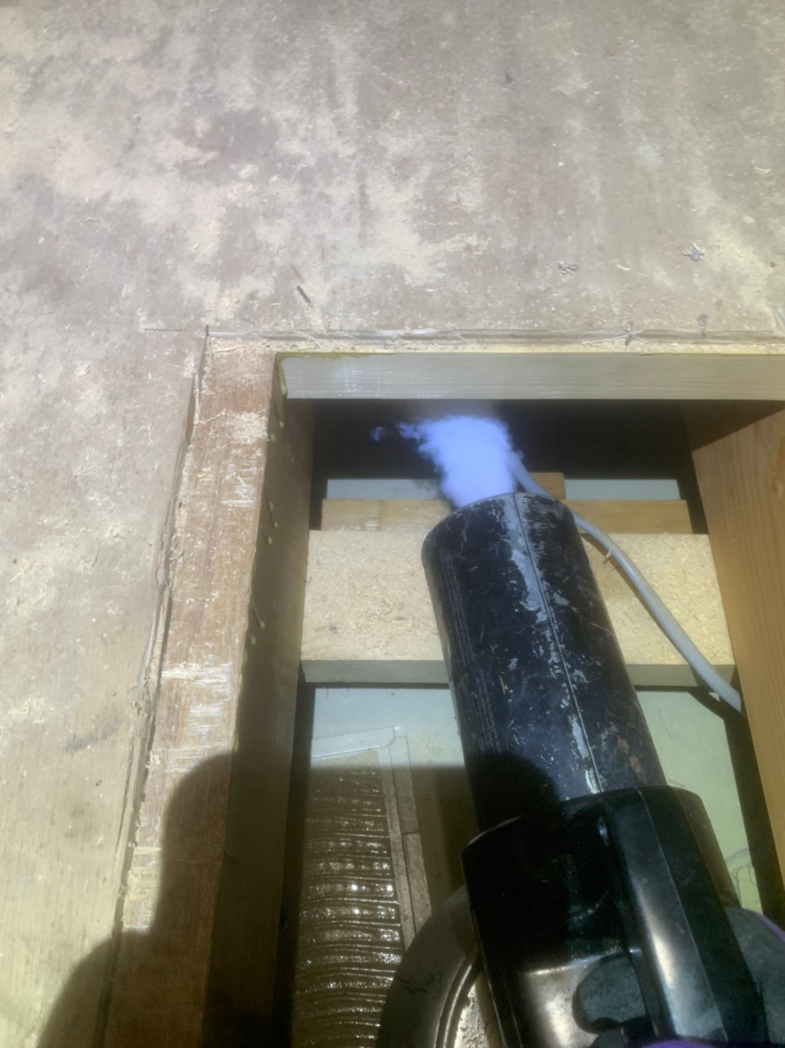 まずは、ネズミの巣がある場所に点検口を作成し、燻煙剤と呼ばれる薬剤を天井裏や床下に投入することで、ネズミを追い出していきます。
