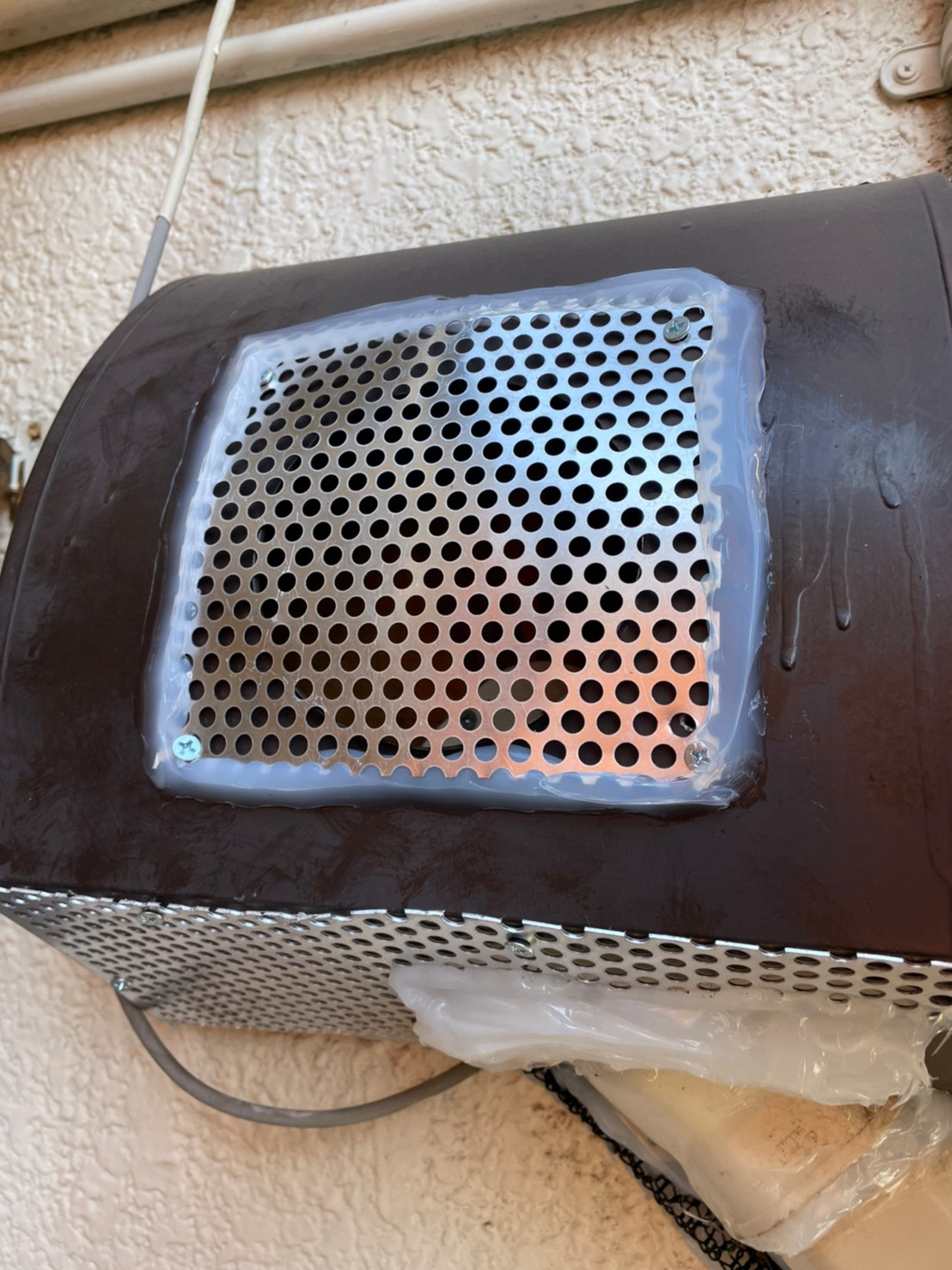 続いて、パンチングメタルや金網、コーキング剤などを用いて、あらゆる侵入経路を封鎖していきます。これによりネズミに限らず、他の害獣の再侵入も防ぐことができます