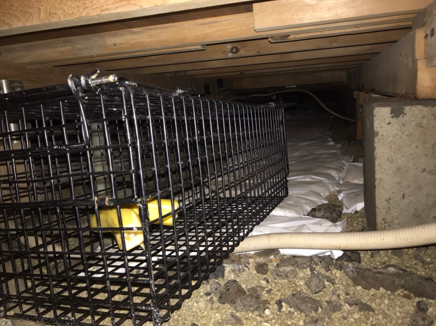 排水部や床下通風口といった場所から、アライグマが建物内へ侵入しており、糞尿による天井の損傷やノミ・ダニ被害、大きな足音などの理由からお問い合わせをいただきました。