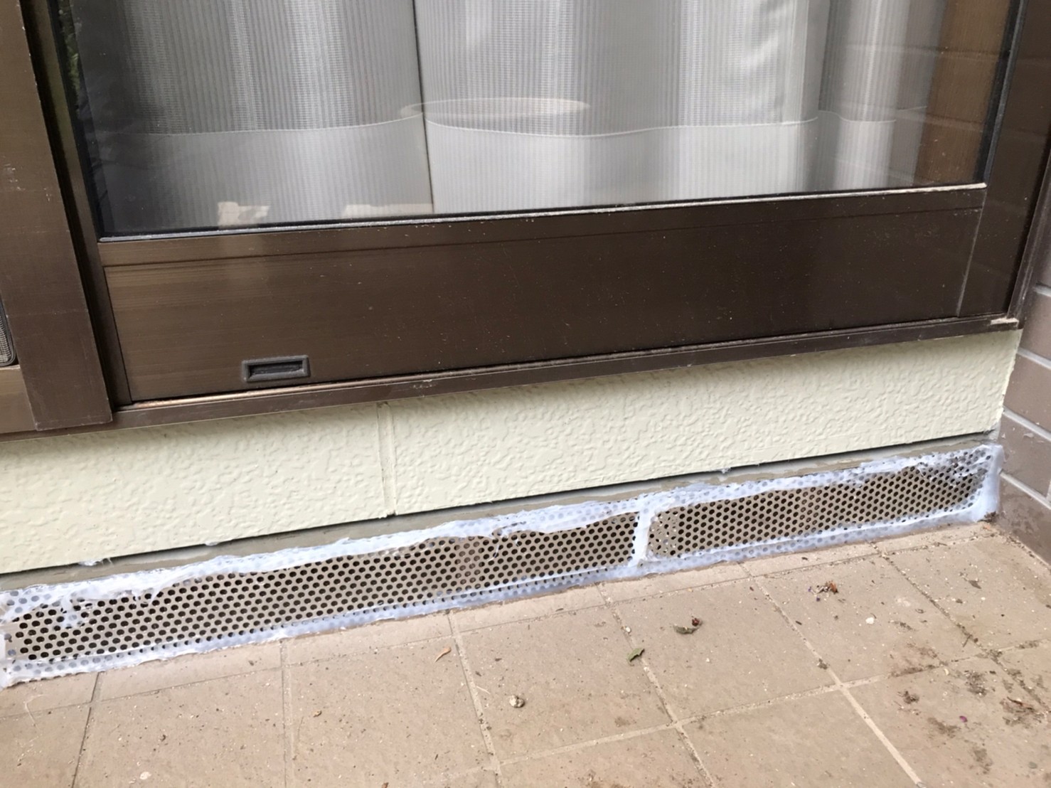 続いて、パンチングメタルや金網、コーキング剤などを用いて、あらゆる侵入経路を封鎖していきます。これによりアライグマに限らず、他の害獣の再侵入も防ぐことができます。