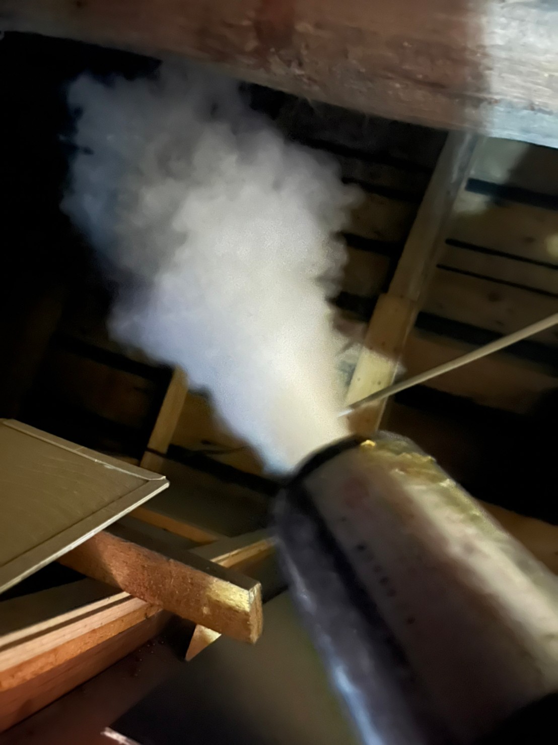 まずは、燻煙剤と呼ばれる薬剤を天井裏や床下に投入することで、ネズミを追い出していきます。