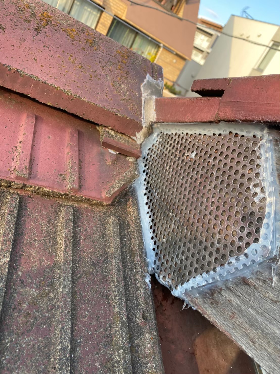 続いて、ネズミの再侵入を防ぐために、、パンチングメタルや金網、コーキング剤などを用いて侵入経路の封鎖を行います。