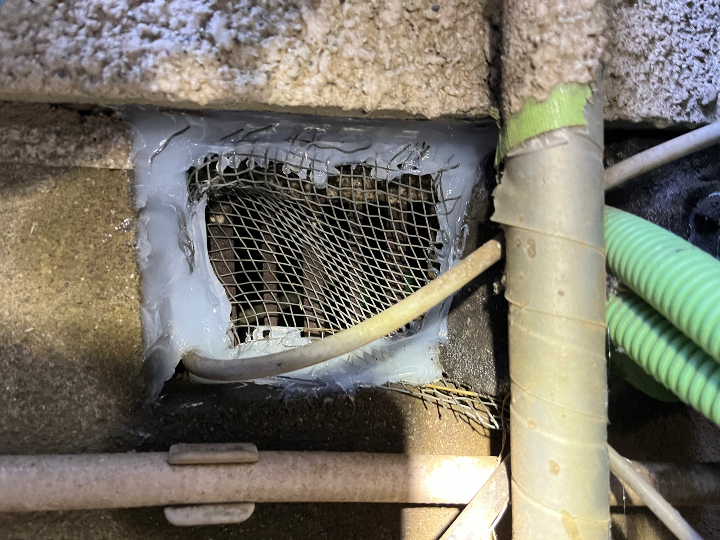 床下通風口や基礎の割れ目といった場所から、ネズミが建物内へ侵入しており、ノミ・ダニ被害や建物の損傷、衛生面での不安などの理由からお問い合わせをいただきました。