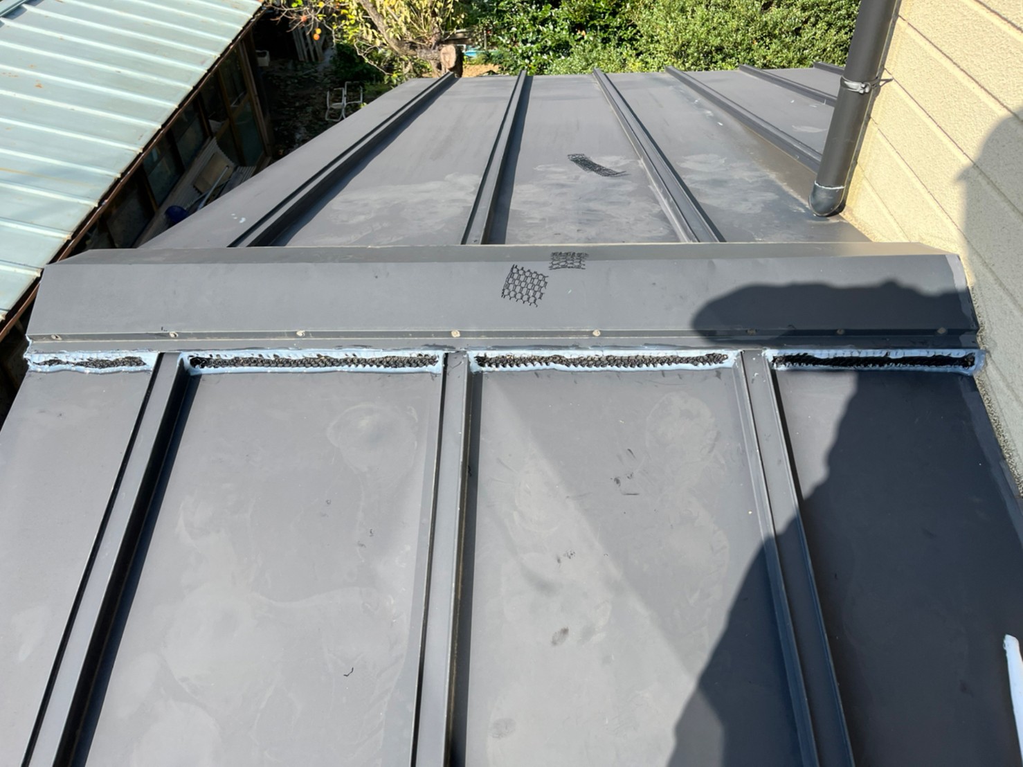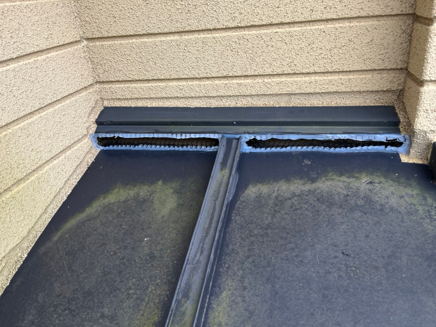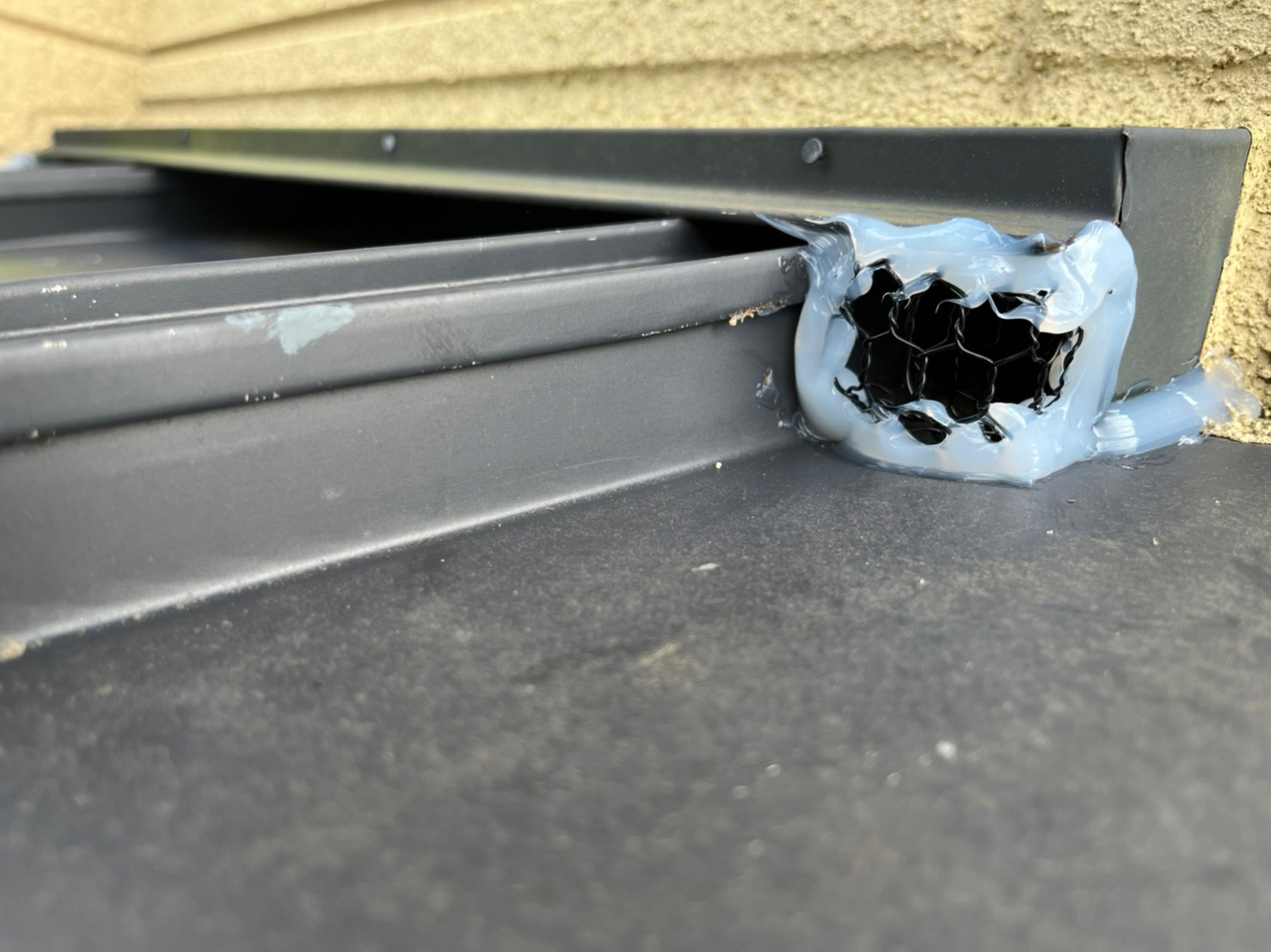 続いて、ネズミの再侵入を防ぐために、パンチングメタルや金網、コーキング剤などを用いて侵入経路の封鎖を行います。
