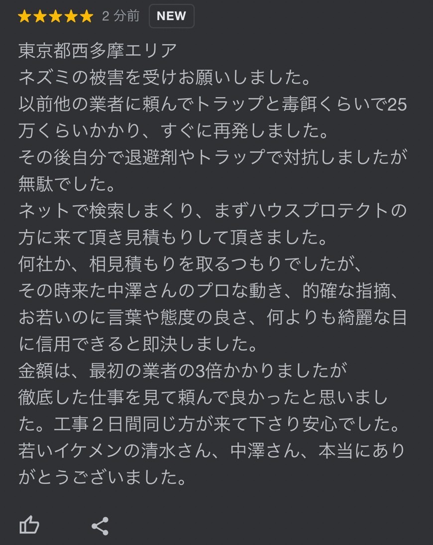 東京都武蔵村山市のお客様よりネズミの駆除・再発防止対策をご依頼いただきました。