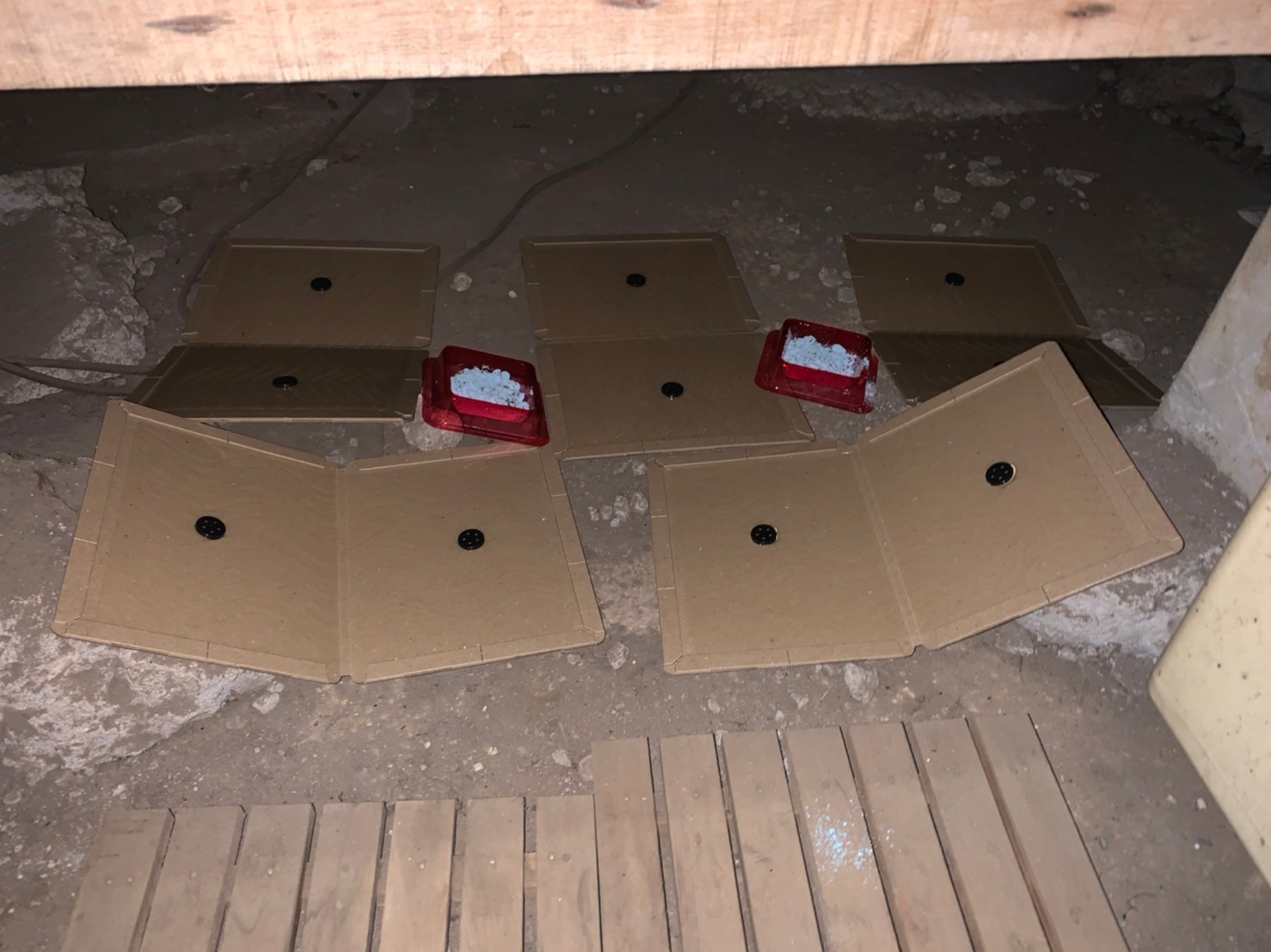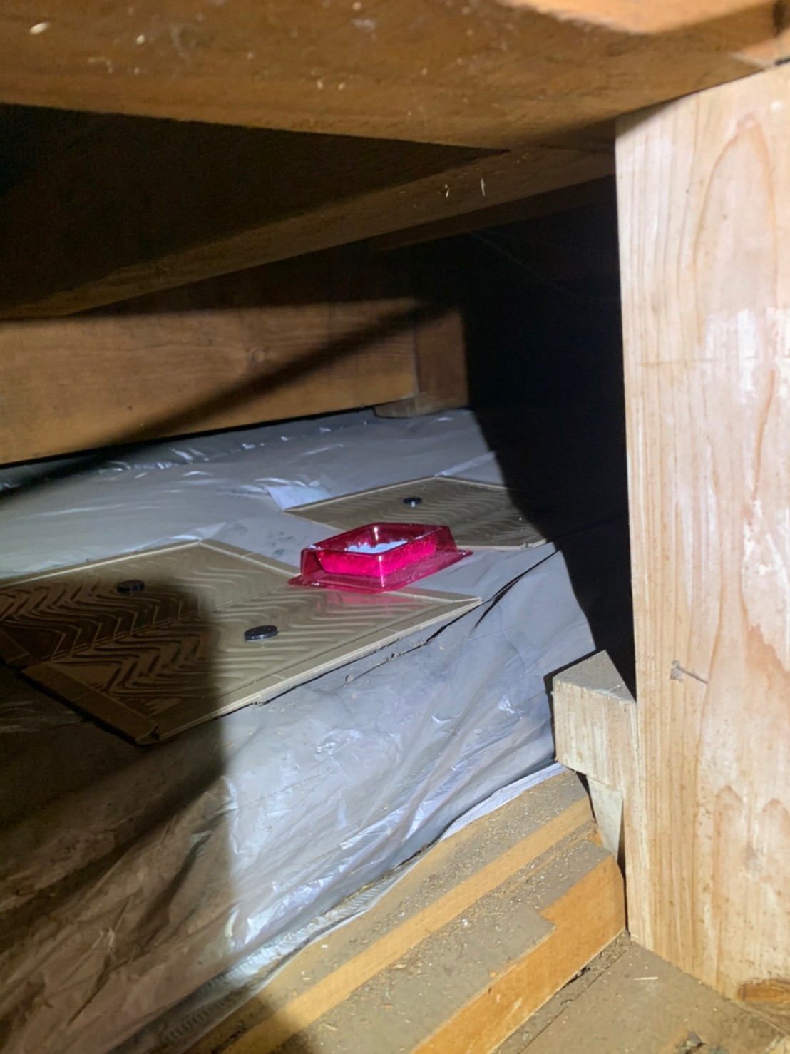最後に、糞清掃や殺菌・消毒、マーキング消臭、ノミ・ダニ駆除、毒エサ・トラップ設置といった残りの作業を行い、駆除~再発防止までの工程が全て終了します。