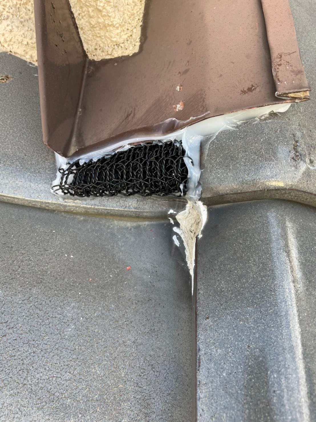 続いて、パンチングメタルや金網、コーキング剤などを用いて、あらゆる侵入経路を封鎖していきます。これによりネズミに限らず、他の害獣の再侵入も防ぐことができます。