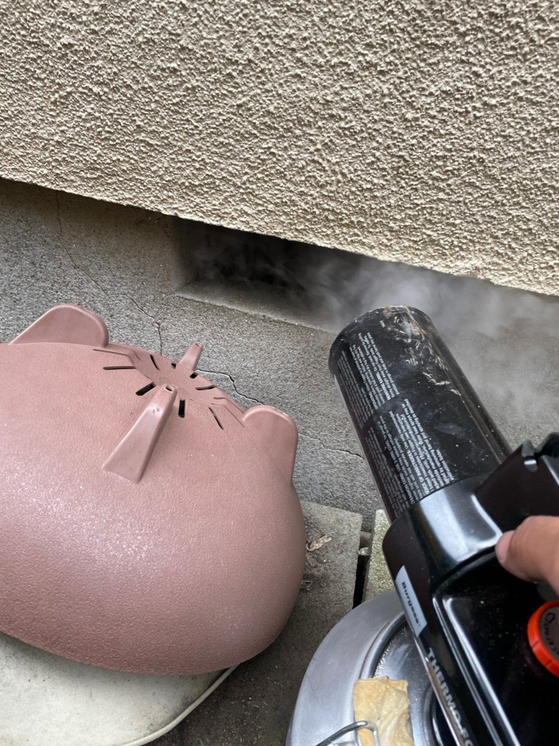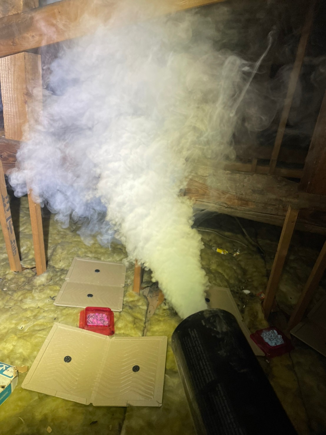 まずは、燻煙剤と呼ばれる薬剤を天井裏や床下に投入することで、ネズミを追い出していきます。