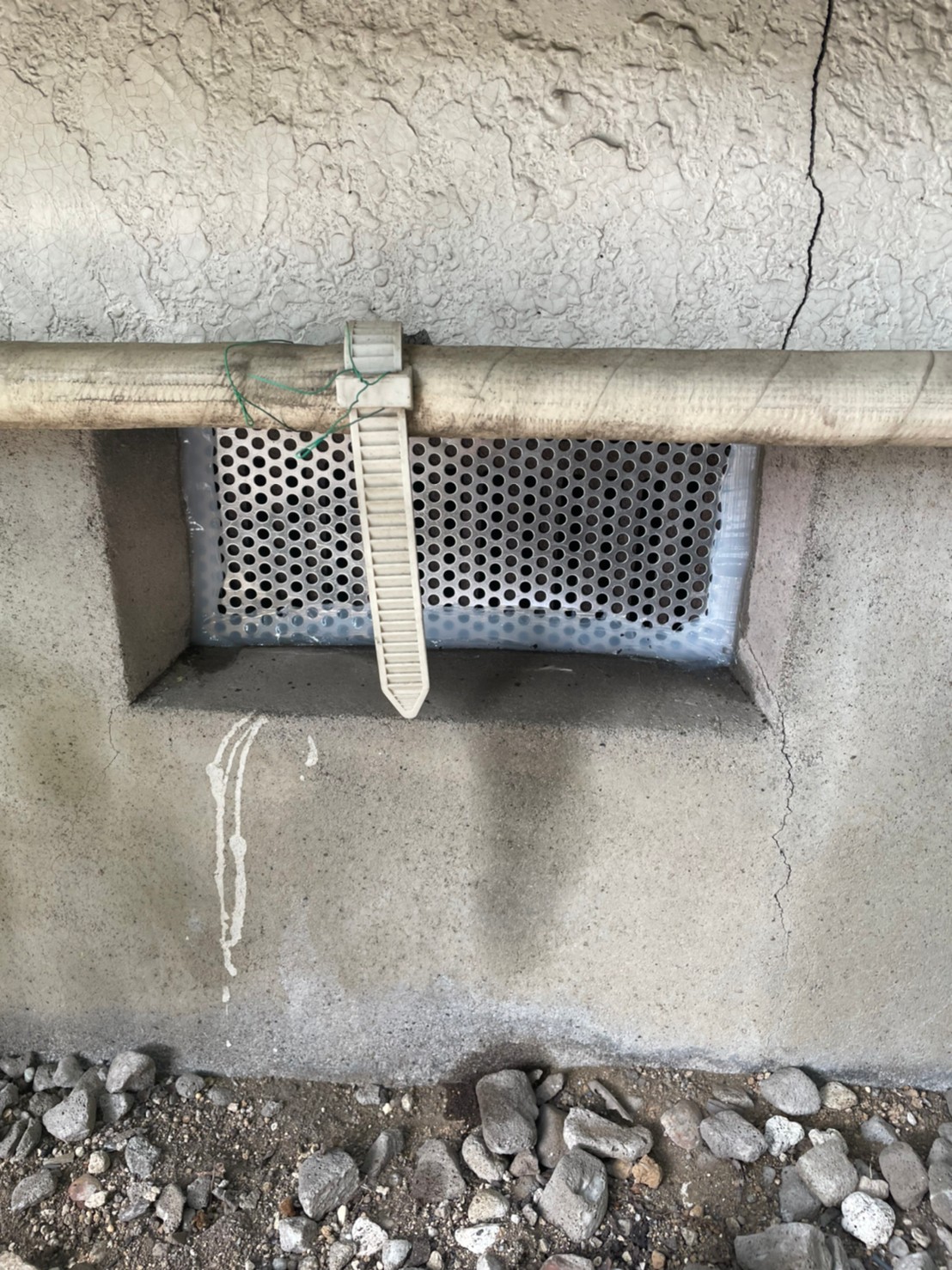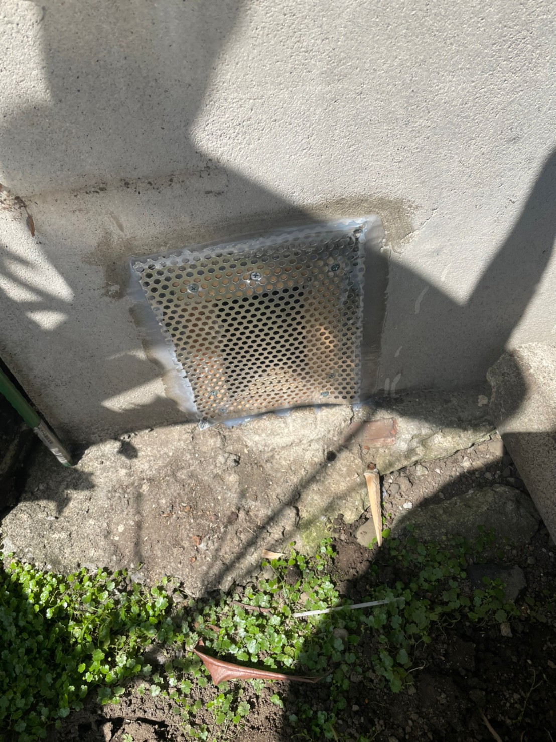 床下通風口や外壁の隙間、配管引き込み部等がネズミの侵入経路と疑われました。