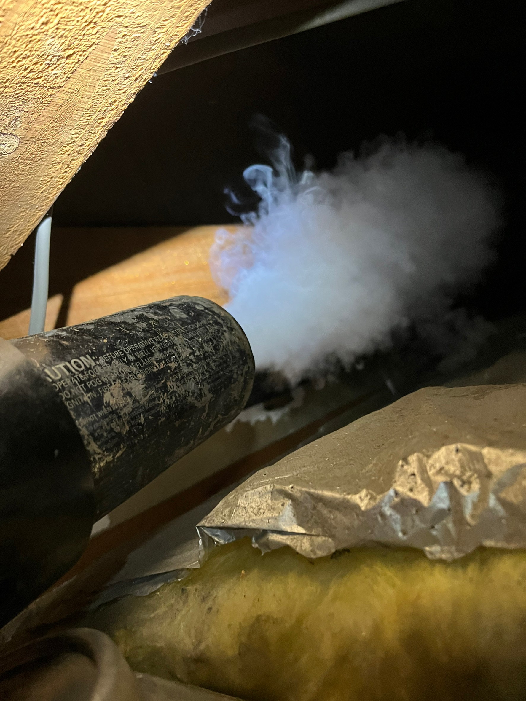 まずは、燻煙剤を使って屋内に潜んでいるネズミを追い出します。