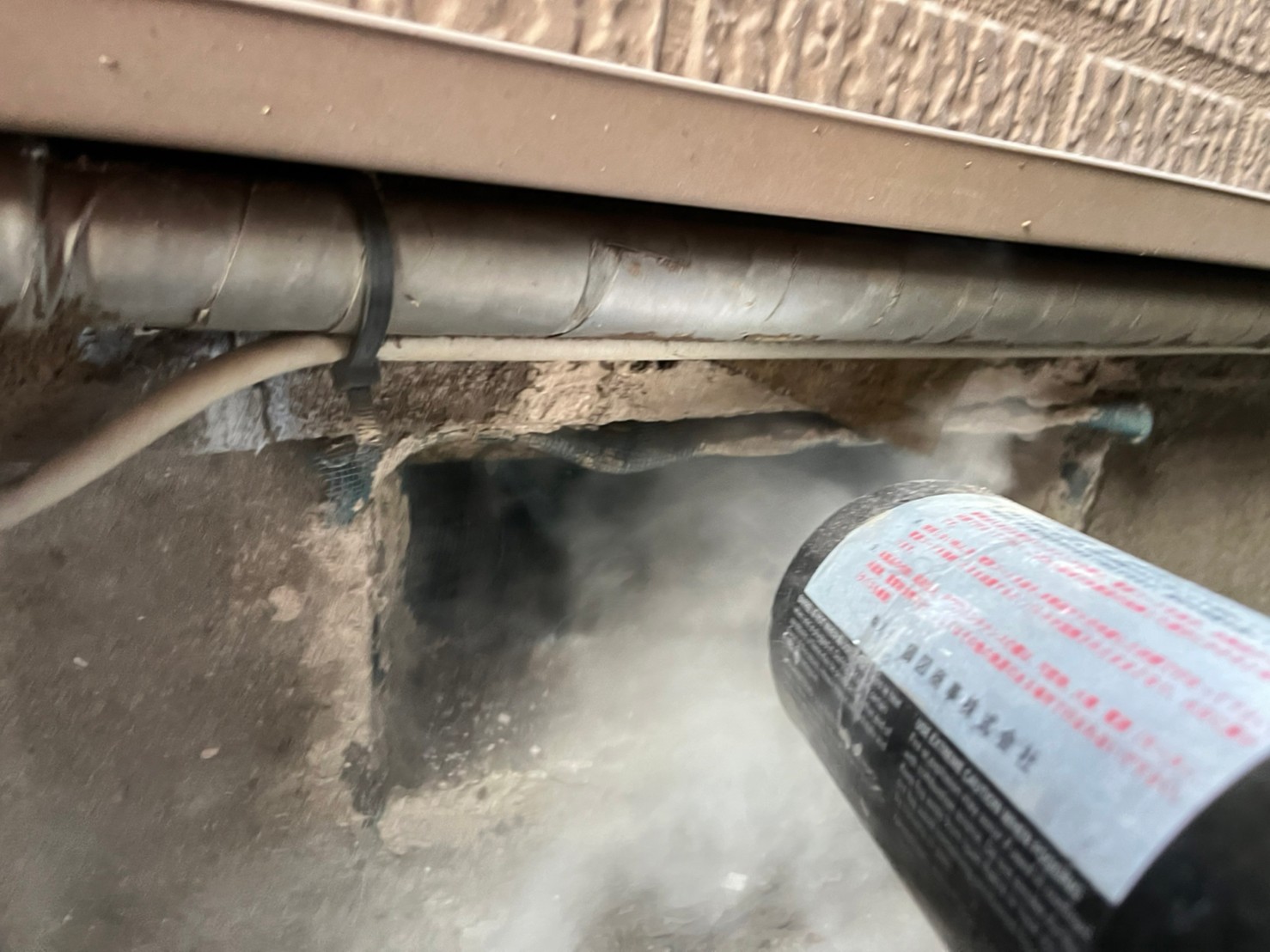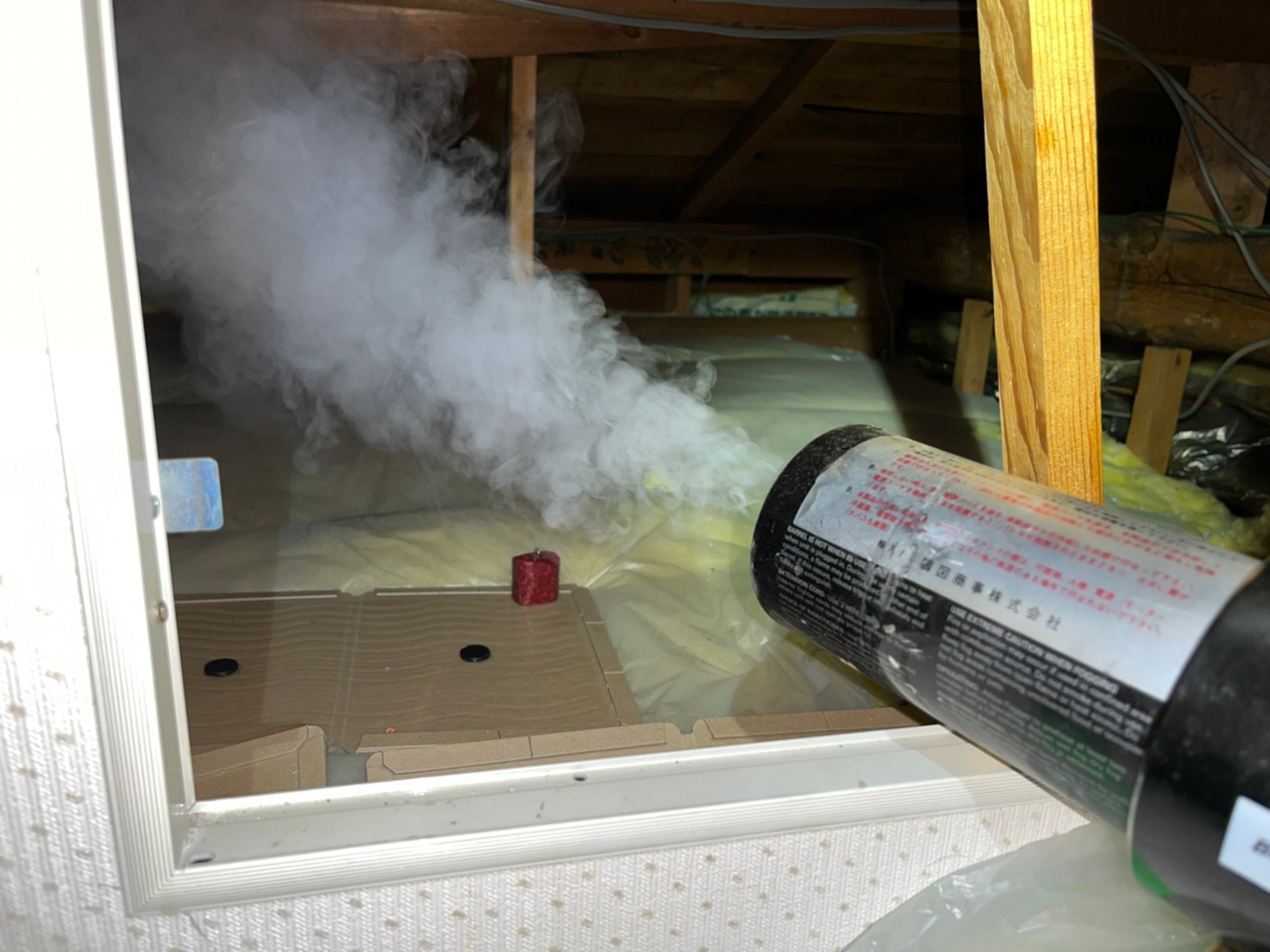 まずは、燻煙剤と呼ばれる薬剤を天井裏や床下に投入することで、ネズミを追い出していきます。