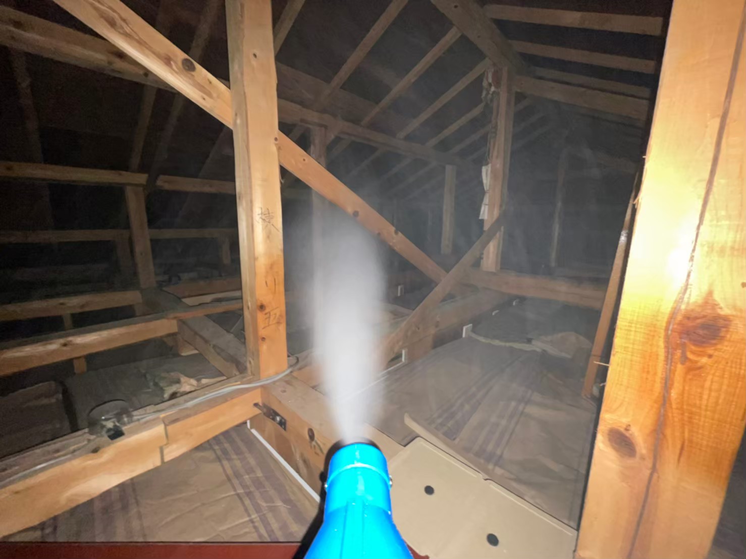 最後に糞清掃、殺菌・消毒、マーキング消臭といった残りの作業を行い、駆除~再発防止までの工程が全て終了します。