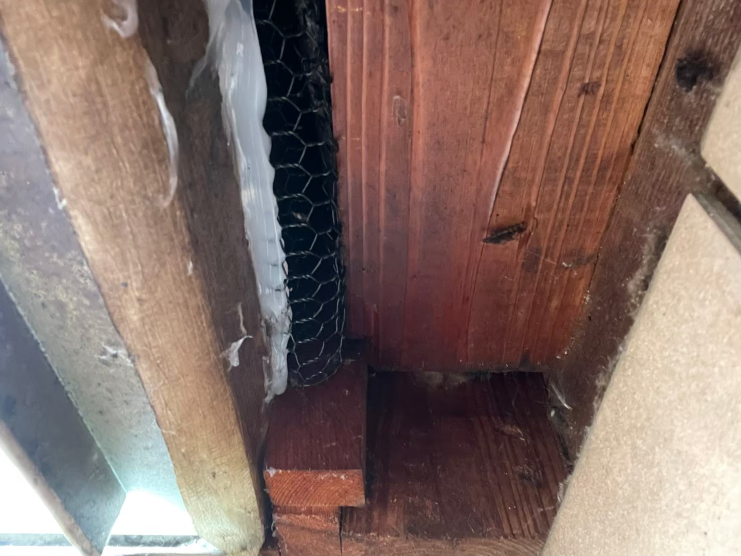 続いて、パンチングメタルや金網、コーキング剤などを用いて、あらゆる侵入経路を封鎖していきます。これによりネズミに限らず、他の害獣の再侵入も防ぐことができます
