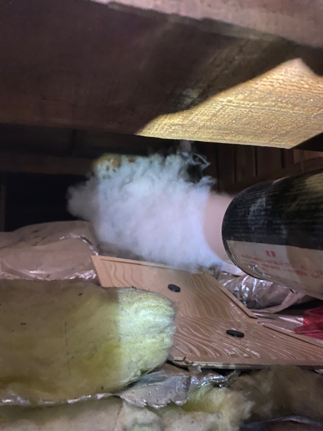 まずは、燻煙剤を使って屋内に潜んでいるネズミ、アライグマを追い出します。