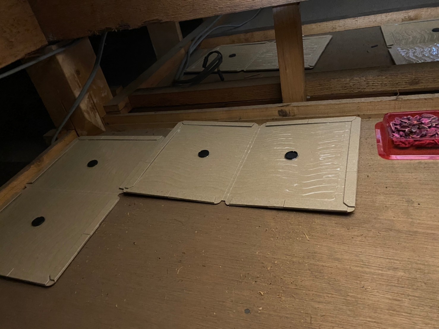 まずは、燻煙剤と呼ばれる薬剤を天井裏や床下に投入することで、ネズミを追い出していきます。