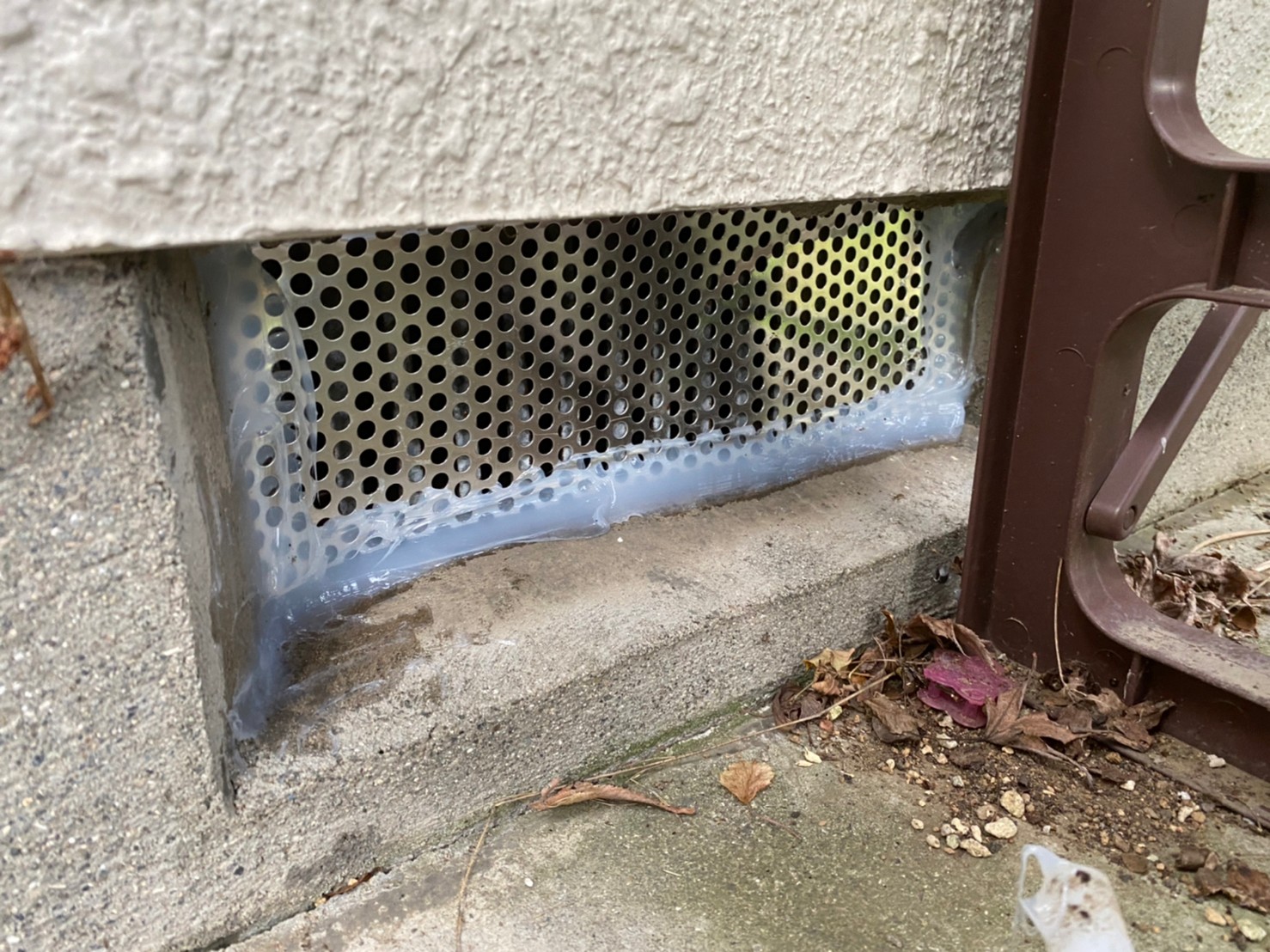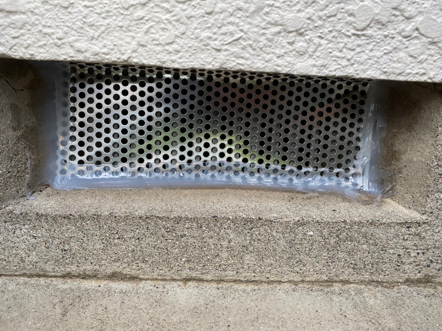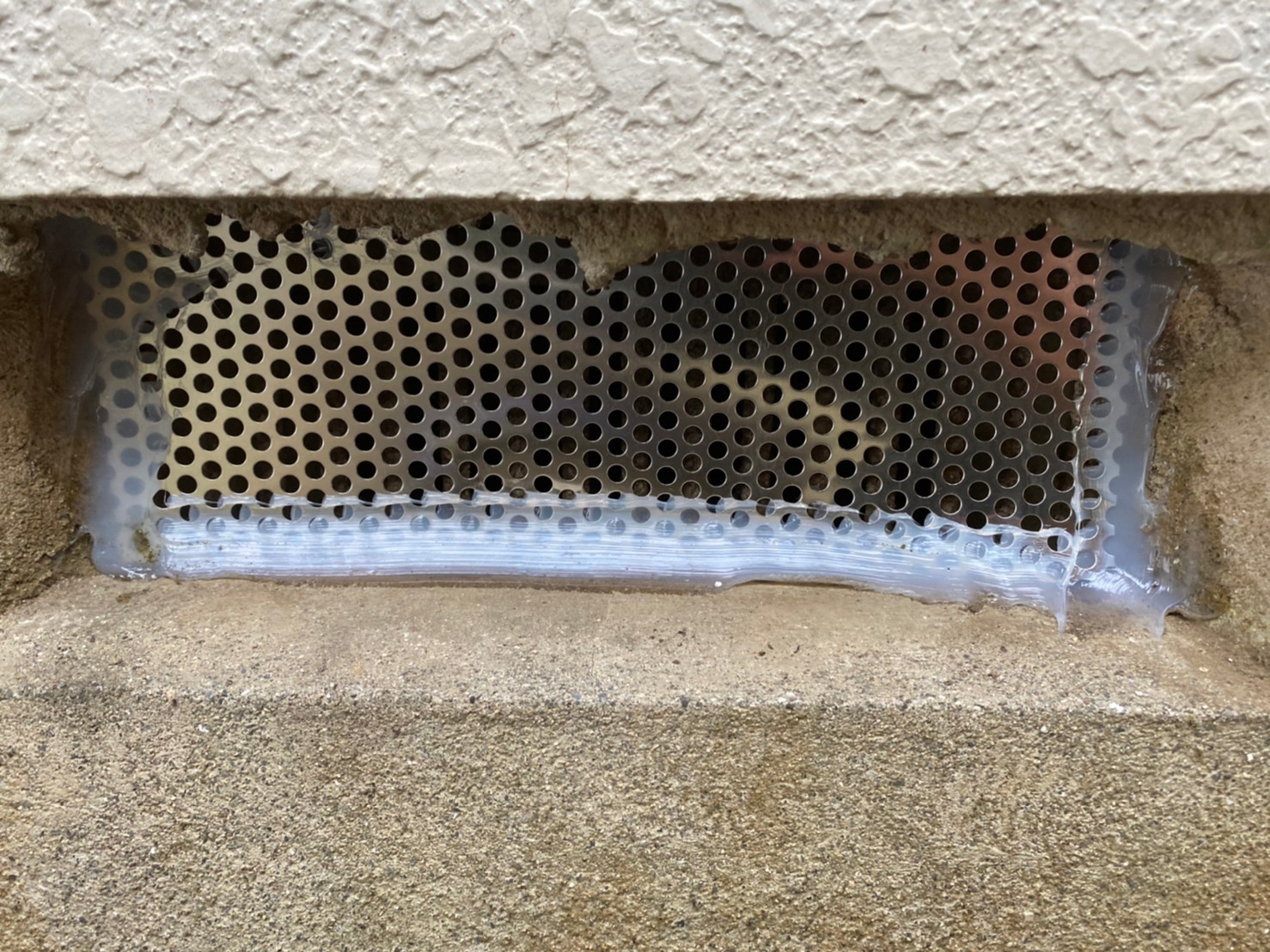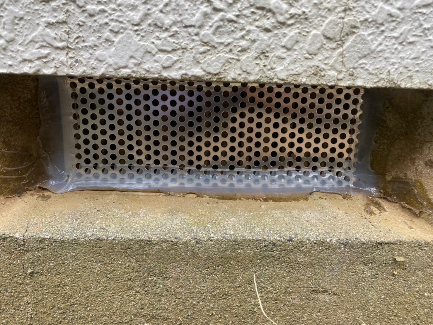 続いて、ネズミの再侵入を防ぐために、パンチングメタルや金網、コーキング剤などを用いて侵入経路の封鎖を行います。