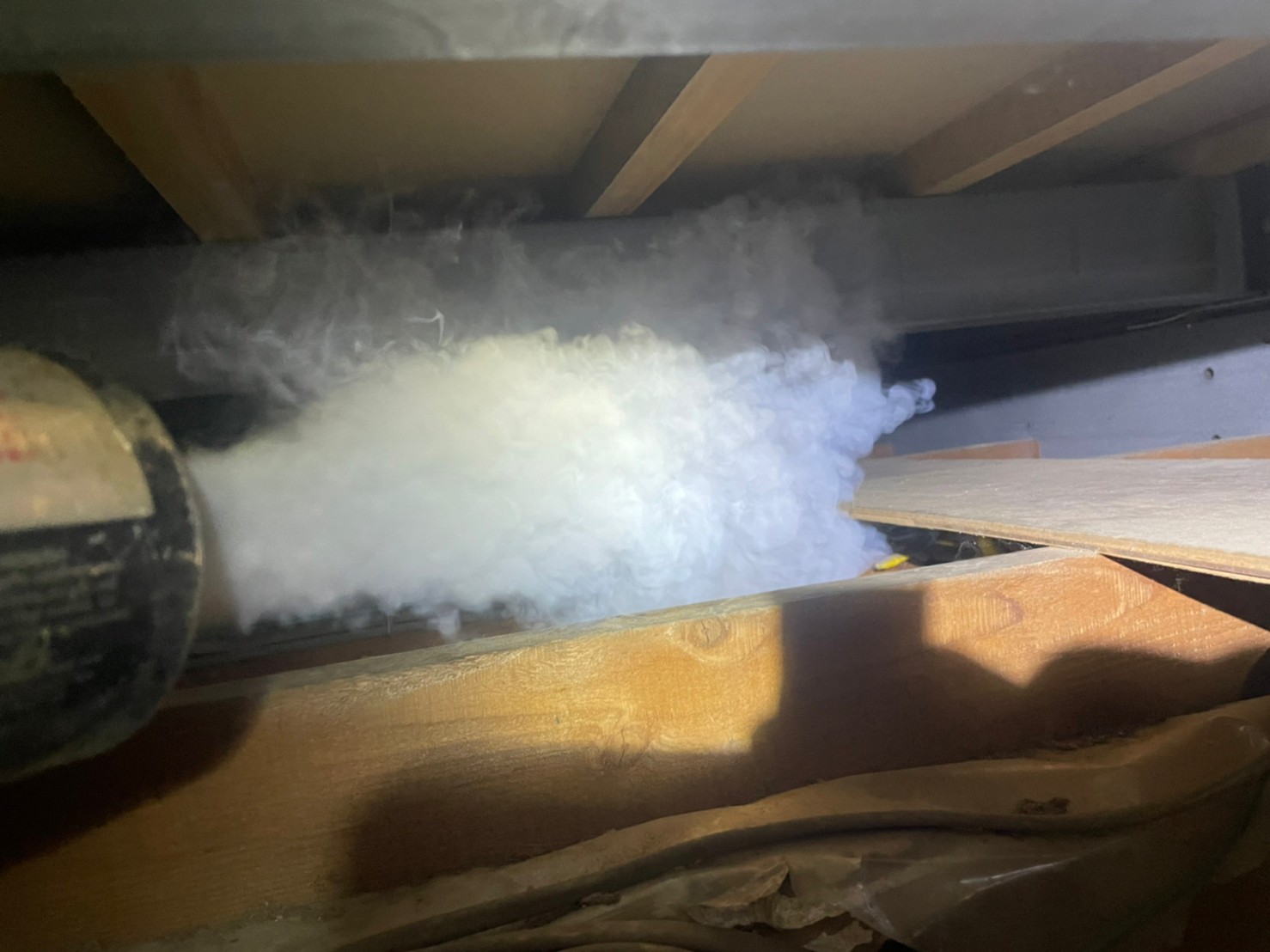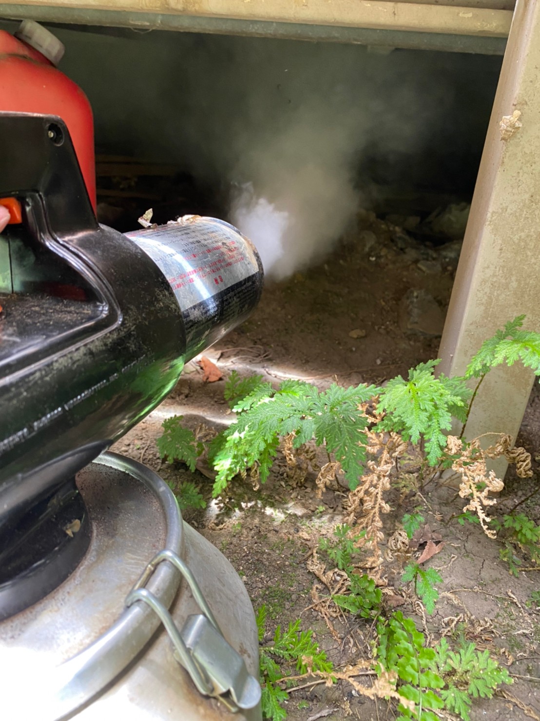 まずは、燻煙剤と呼ばれる薬剤を天井裏や床下に投入することで、ハクビシンを追い出していきます。