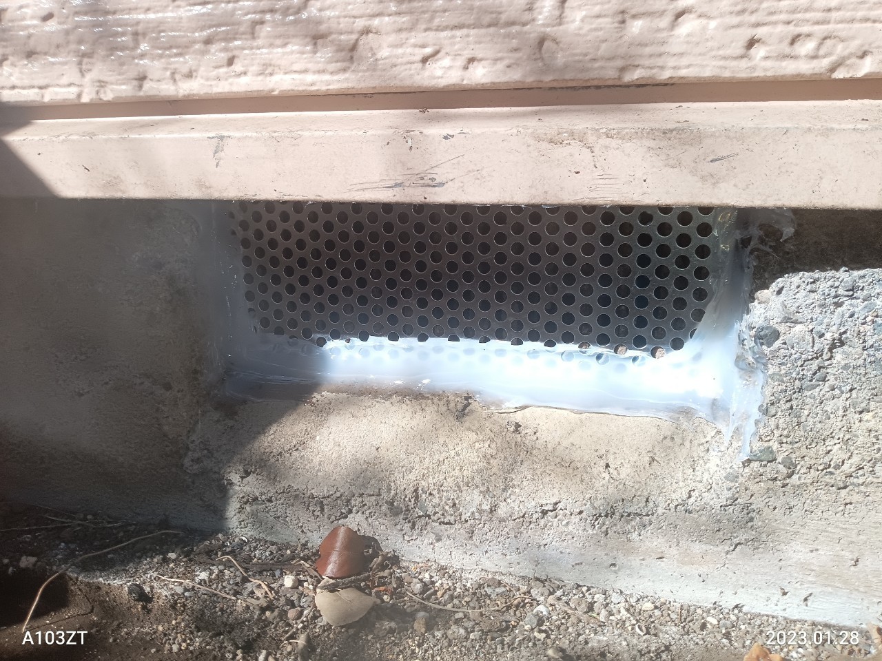 続いて、ネズミの再侵入を防ぐために、パンチングメタルや金網、コーキング剤などを用いて侵入経路の封鎖を行います。