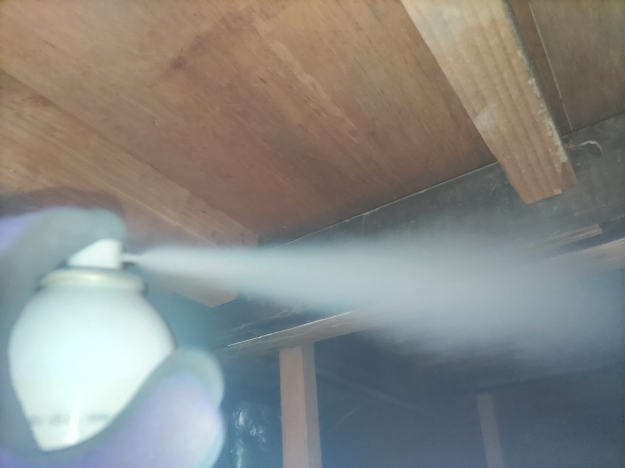 まずは、ネズミの巣がある場所に点検口を作成し、燻煙剤を使って屋内に潜んでいる個体を追い出します。