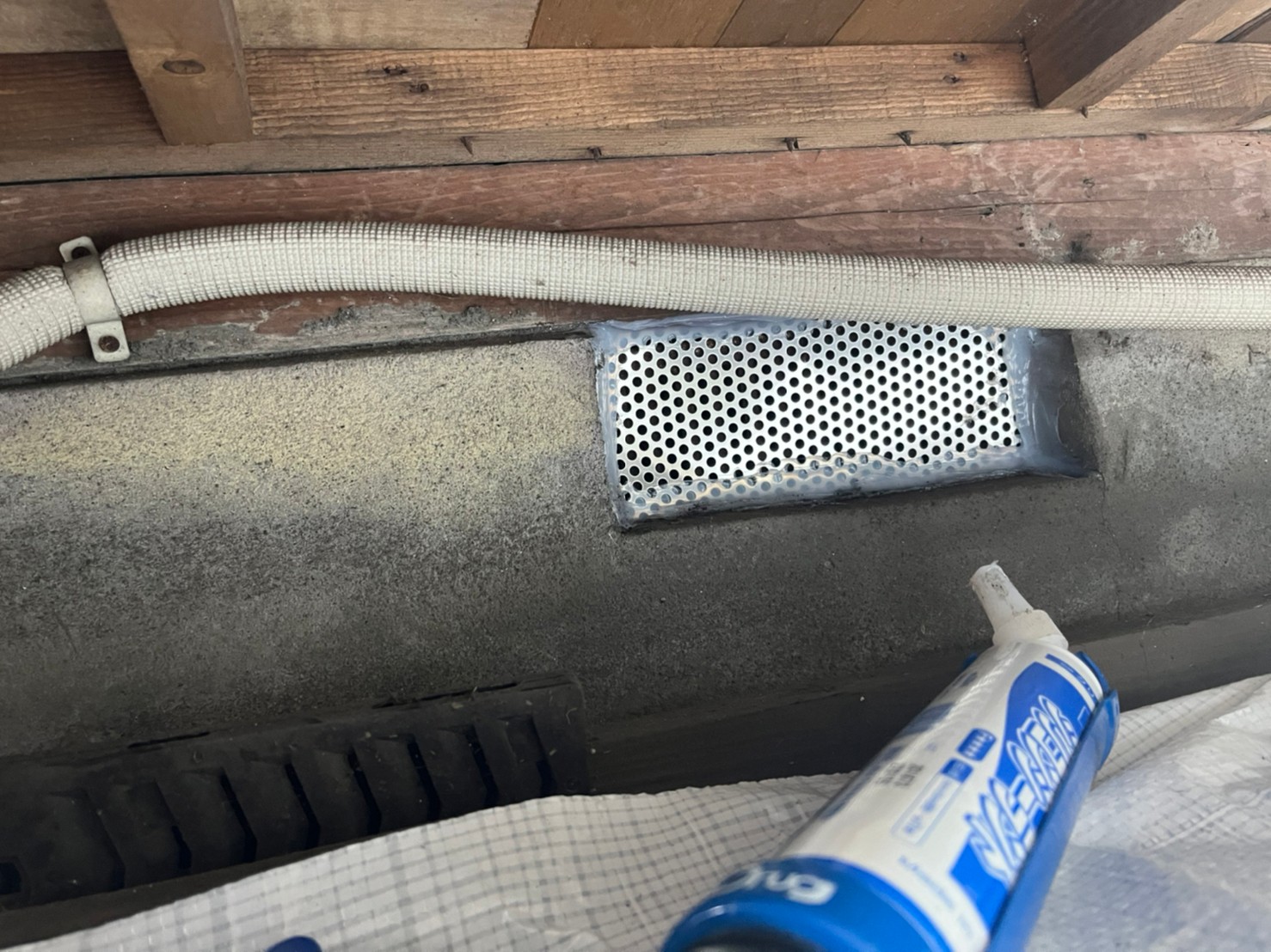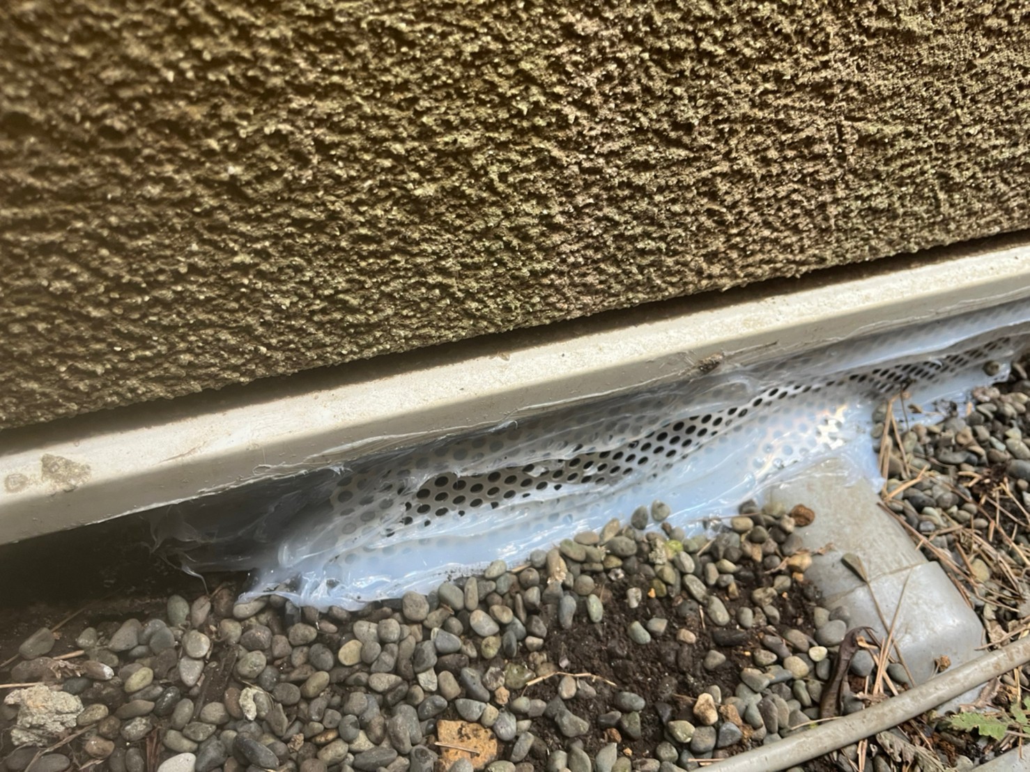 続いて、パンチングメタルや金網、コーキング剤などを用いて、あらゆる侵入経路を封鎖していきます。これによりネズミに限らず、他の害獣の再侵入も防ぐことができます。