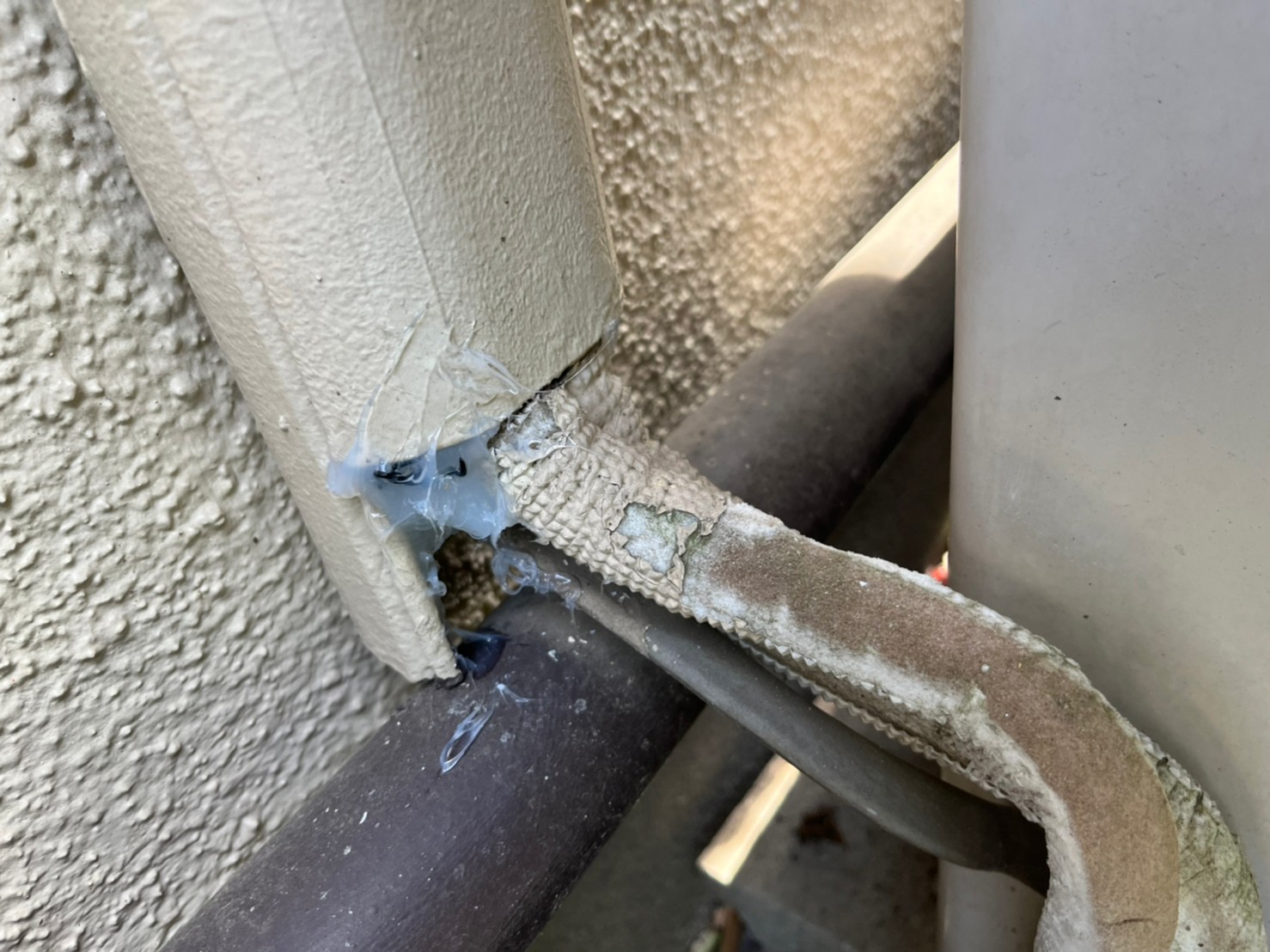 屋根の隙間やエアコン配管の隙間、床下通風口といった場所から、ネズミが建物内へ侵入しており、騒音被害や糞尿による悪臭、衛生面での不安などの理由からお問い合わせをいただきました。