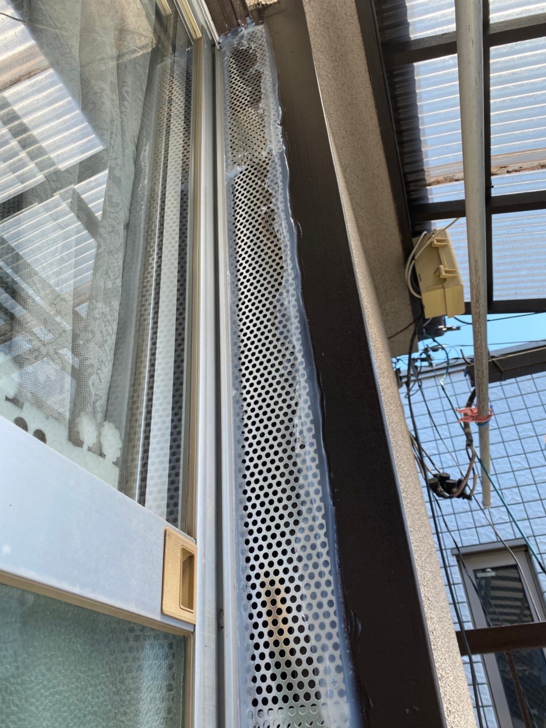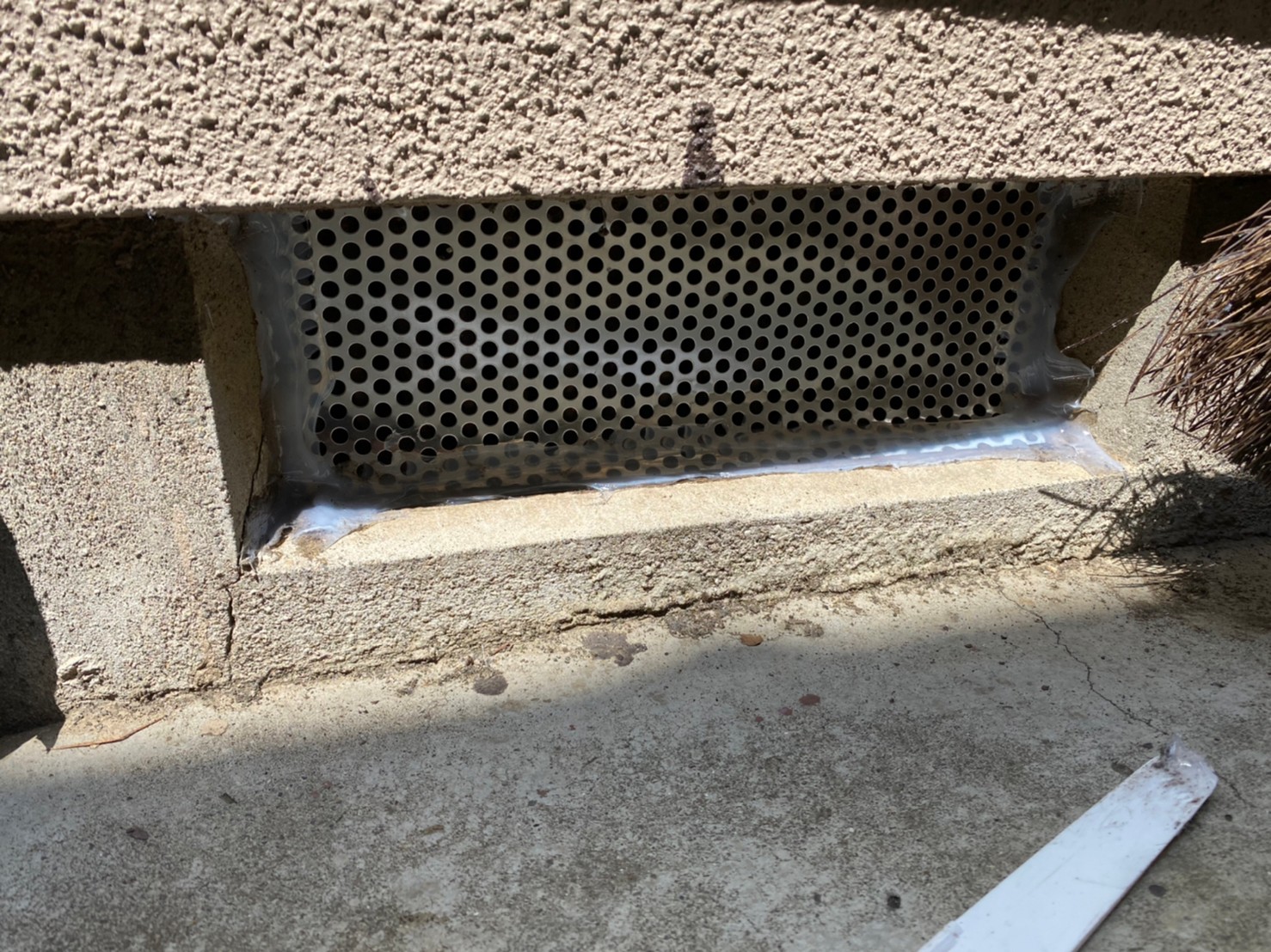 続いて、パンチングメタルや金網、コーキング剤などを用いて、あらゆる侵入経路を封鎖していきます。これによりネズミに限らず、他の害獣の再侵入も防ぐことができます。