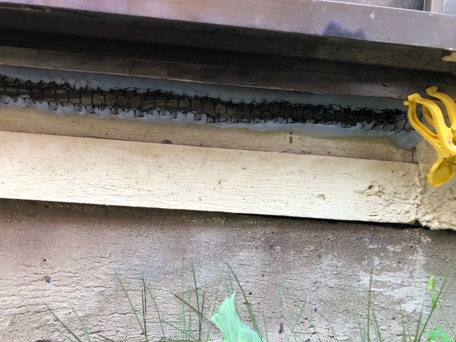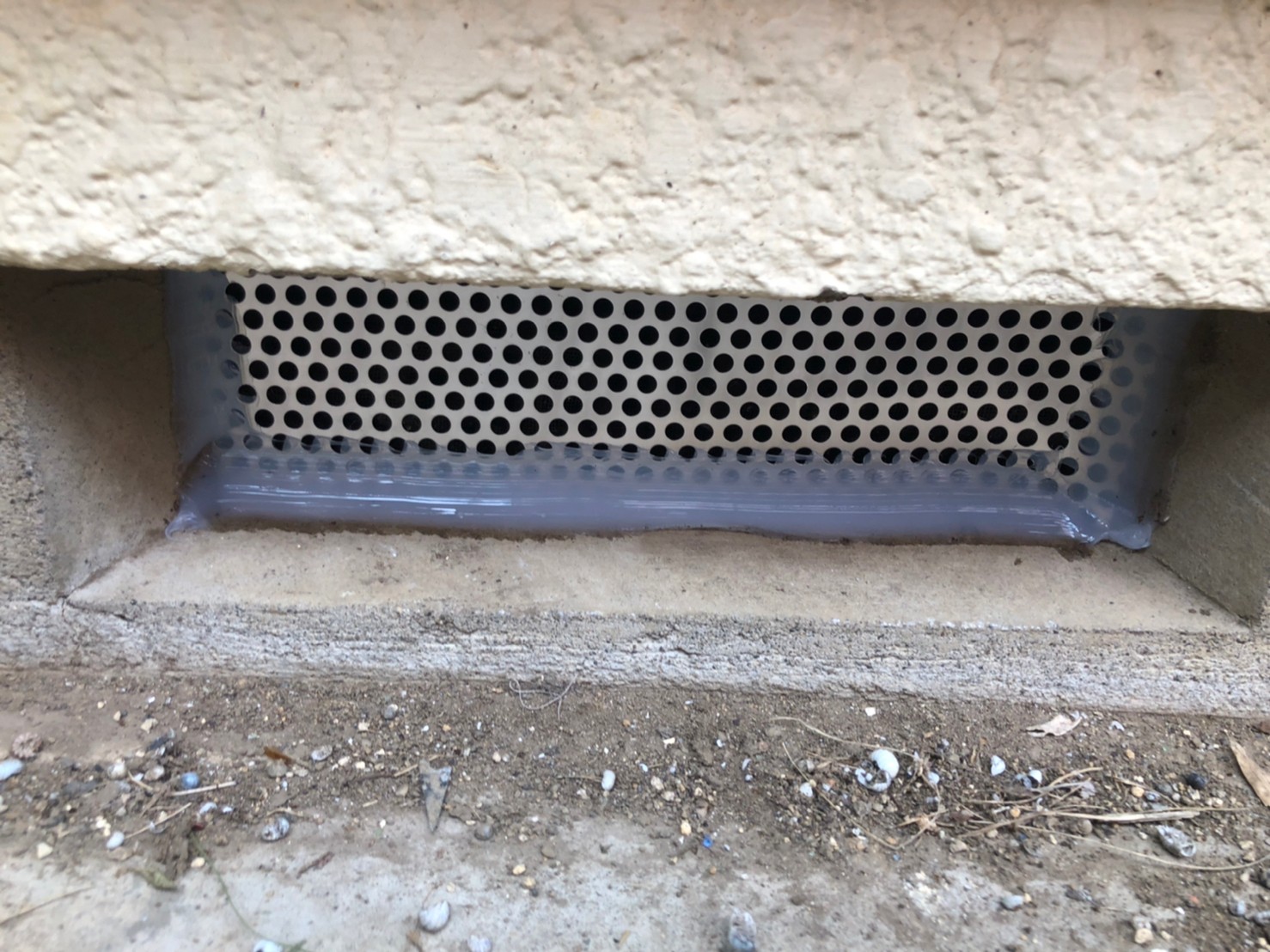 続いて、ネズミの再侵入を防ぐために、パンチングメタルや金網、コーキング剤などを用いて侵入経路の封鎖を行います。