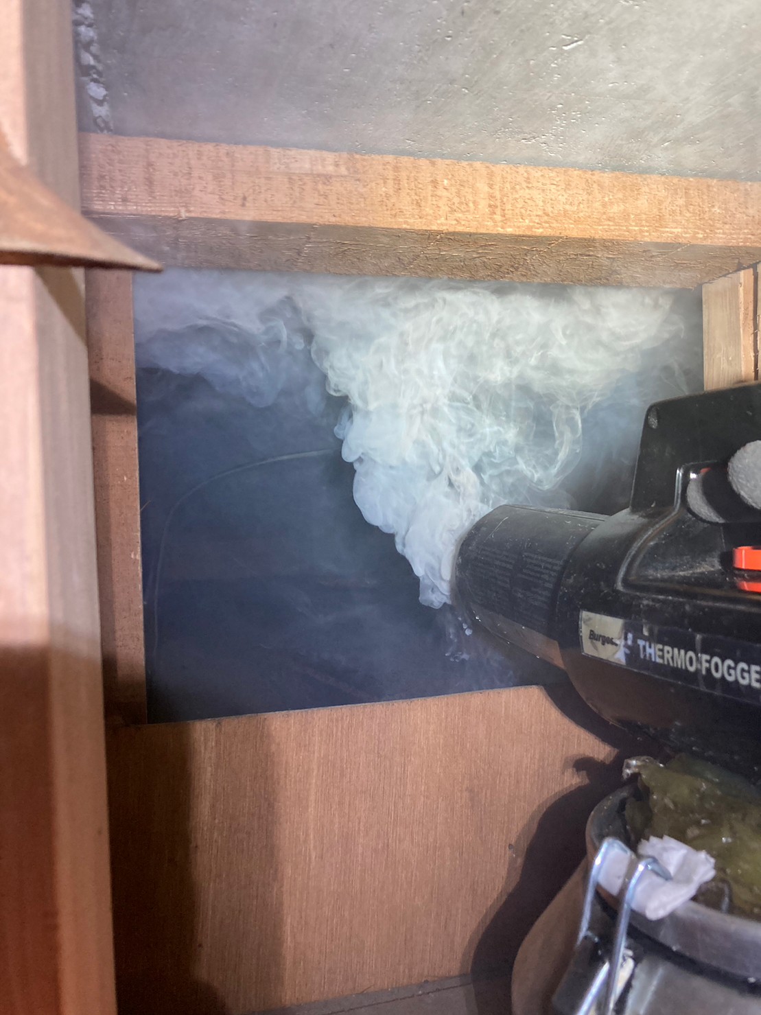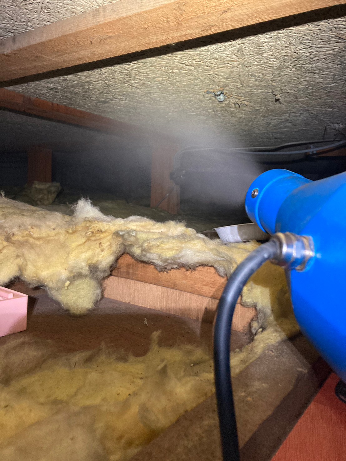 まずは、燻煙剤と呼ばれる薬剤を天井裏や床下に投入することで、ネズミを追い出していきます。