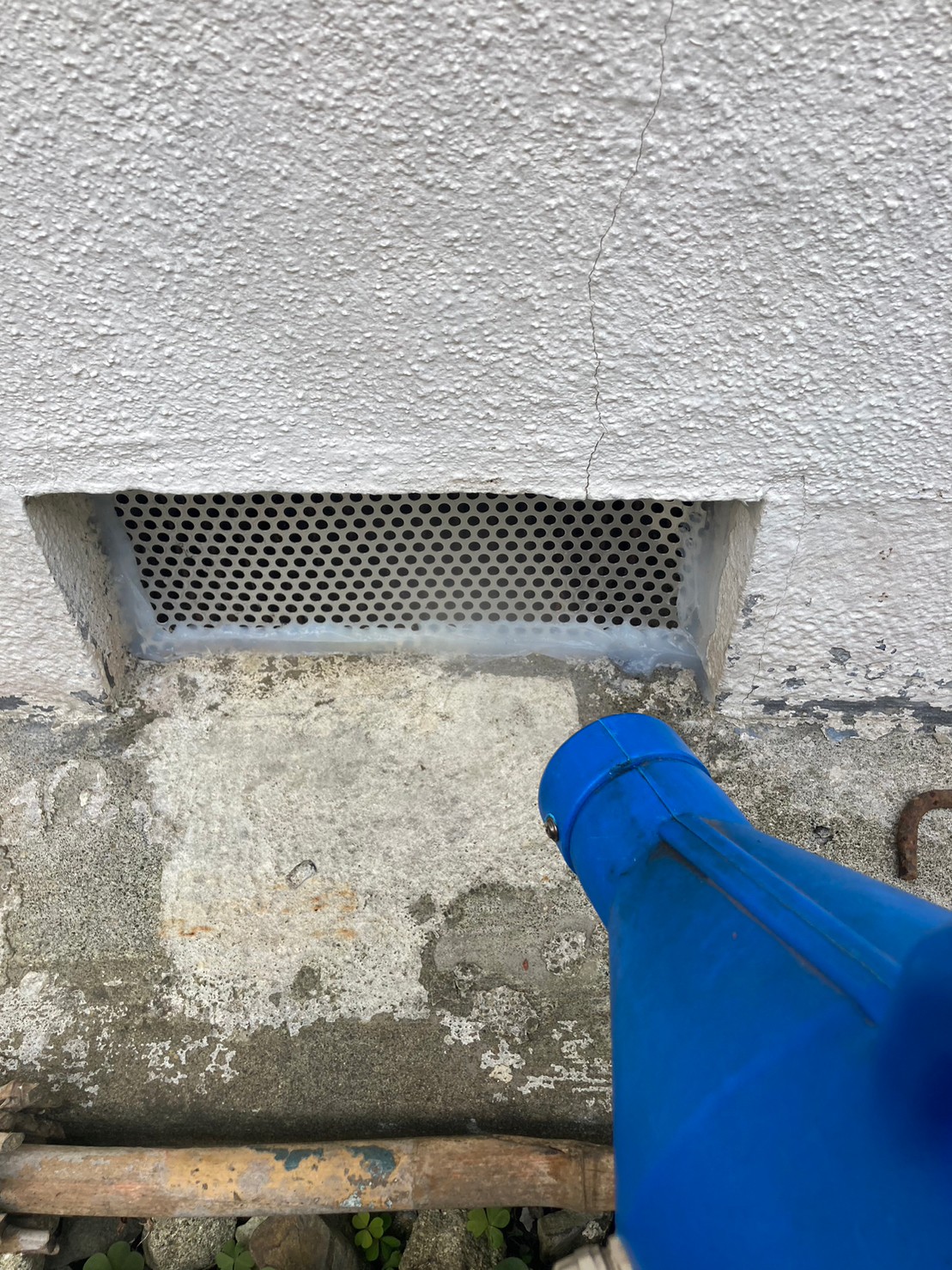 床下通風口や基礎の割れ目といった場所から、ネズミが建物内へ侵入しており、糞尿による悪臭や建物の損傷、衛生面での不安などの理由からお問い合わせをいただきました。
