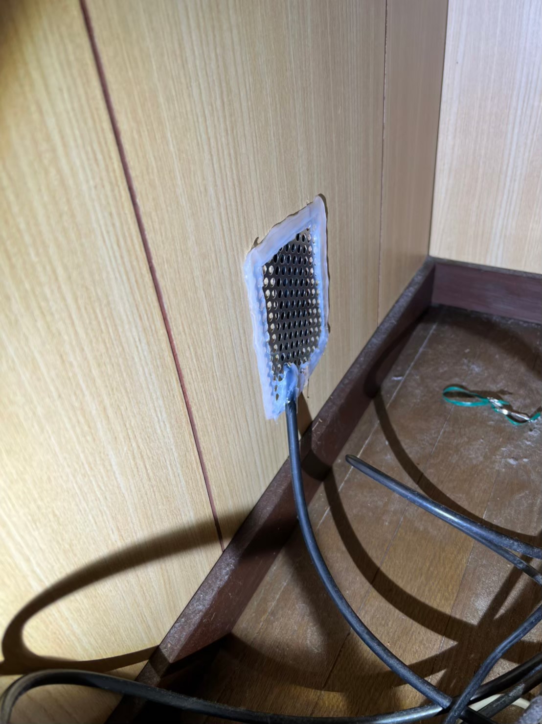 続いて、ネズミの再侵入を防ぐために、パンチングメタルや金網、コーキング剤などを用いて侵入経路の封鎖を行います。
