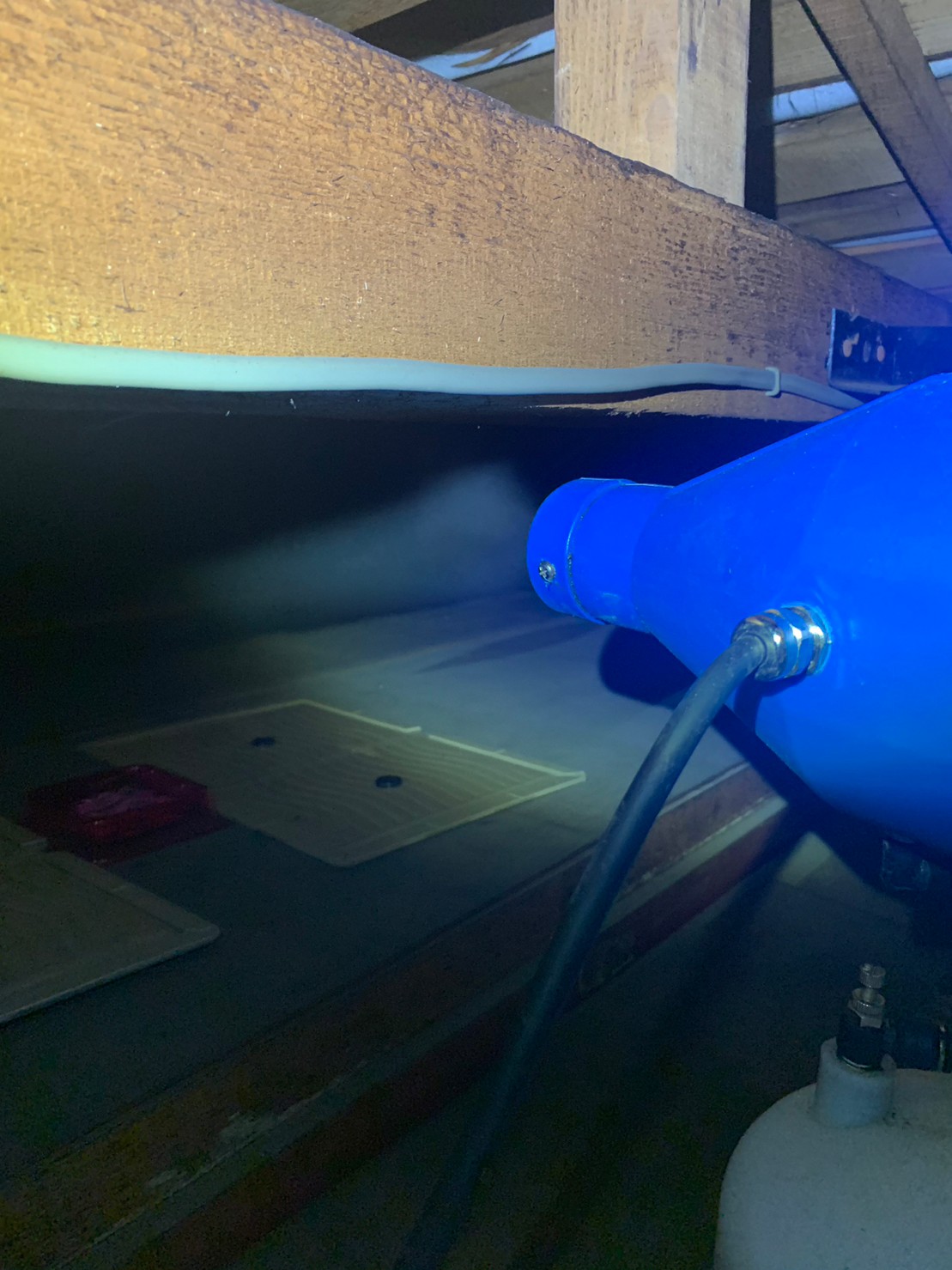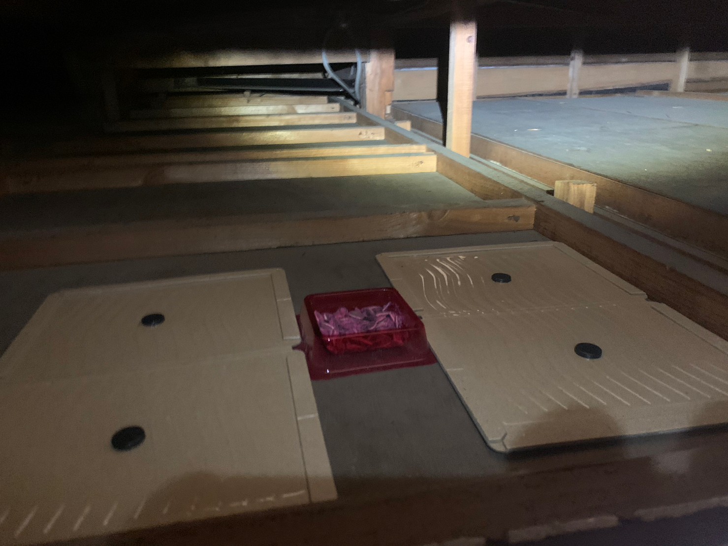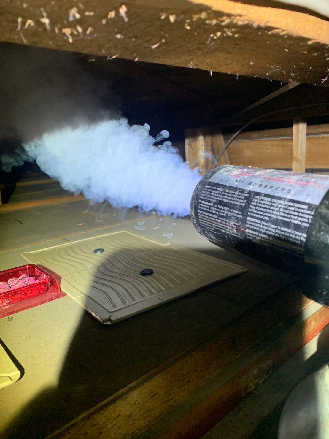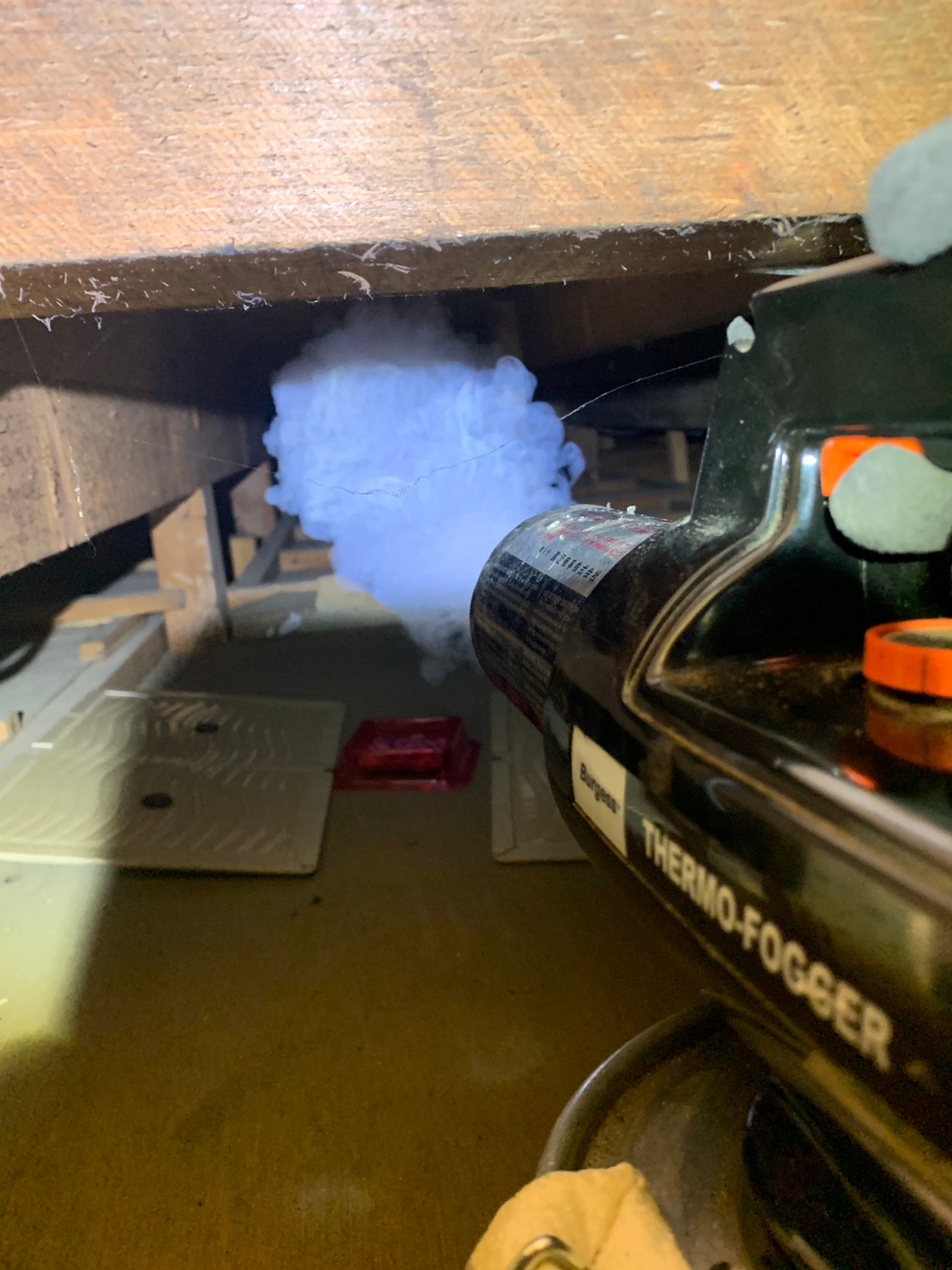 まずは、燻煙剤と呼ばれる薬剤を天井裏や床下に投入することで、ネズミを追い出していきます。