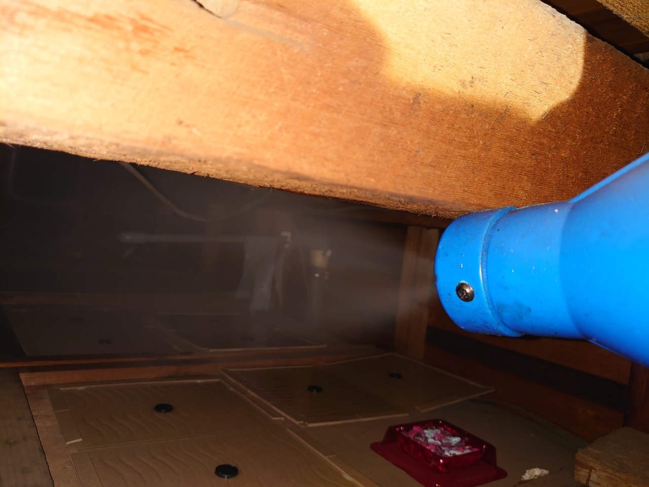 まずは、燻煙剤と呼ばれる薬剤を天井裏や床下に投入することで、ネズミを追い出していきます。