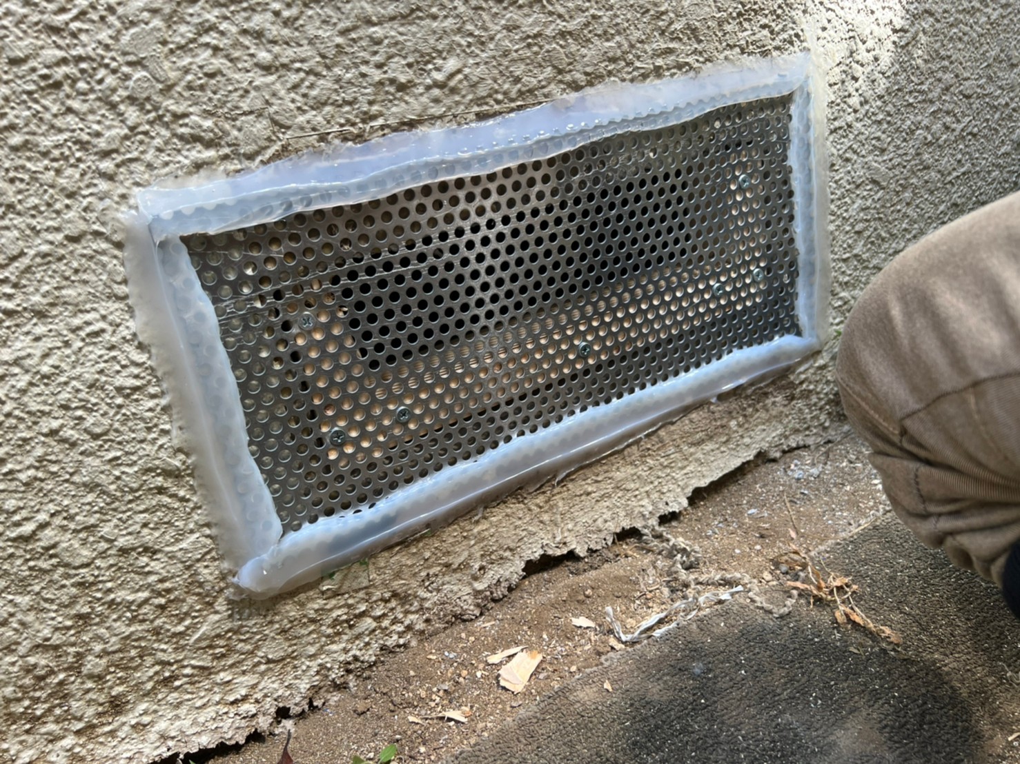 床下通風口や屋根の隙間、エアコン配管の隙間といった場所から、ネズミが建物内へ侵入しており、騒音被害や糞尿による悪臭、ノミ・ダニ被害などの理由からお問い合わせをいただきました。