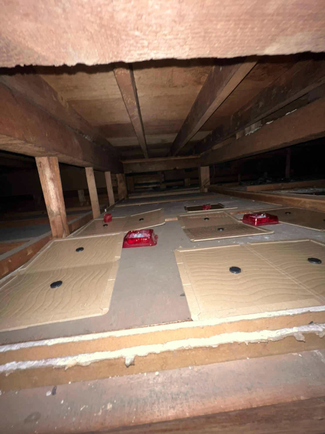 最後に、糞清掃やマーキング消臭、ノミ・ダニ駆除、毒エサ・トラップ設置といった残りの作業を行い、駆除~再発防止までの工程が全て終了します。