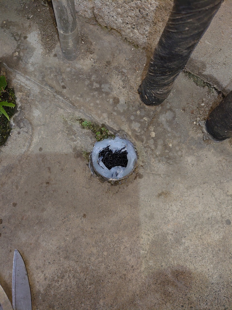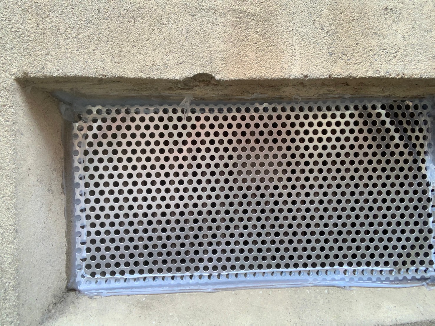 続いて、ネズミの再侵入を防ぐために、パンチングメタルや金網、コーキング剤などを用いて侵入経路の封鎖を行います。