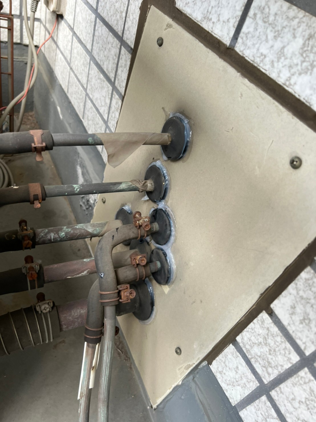エアコン配管の隙間や雨戸・シャッターの戸袋、配管引き込み部等がネズミの侵入経路と疑われました。
