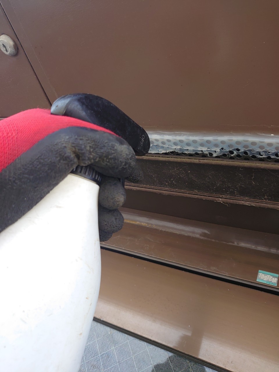 続いて、ネズミの再侵入を防ぐために、パンチングメタルや金網、コーキング剤などを用いて侵入経路の封鎖を行います。