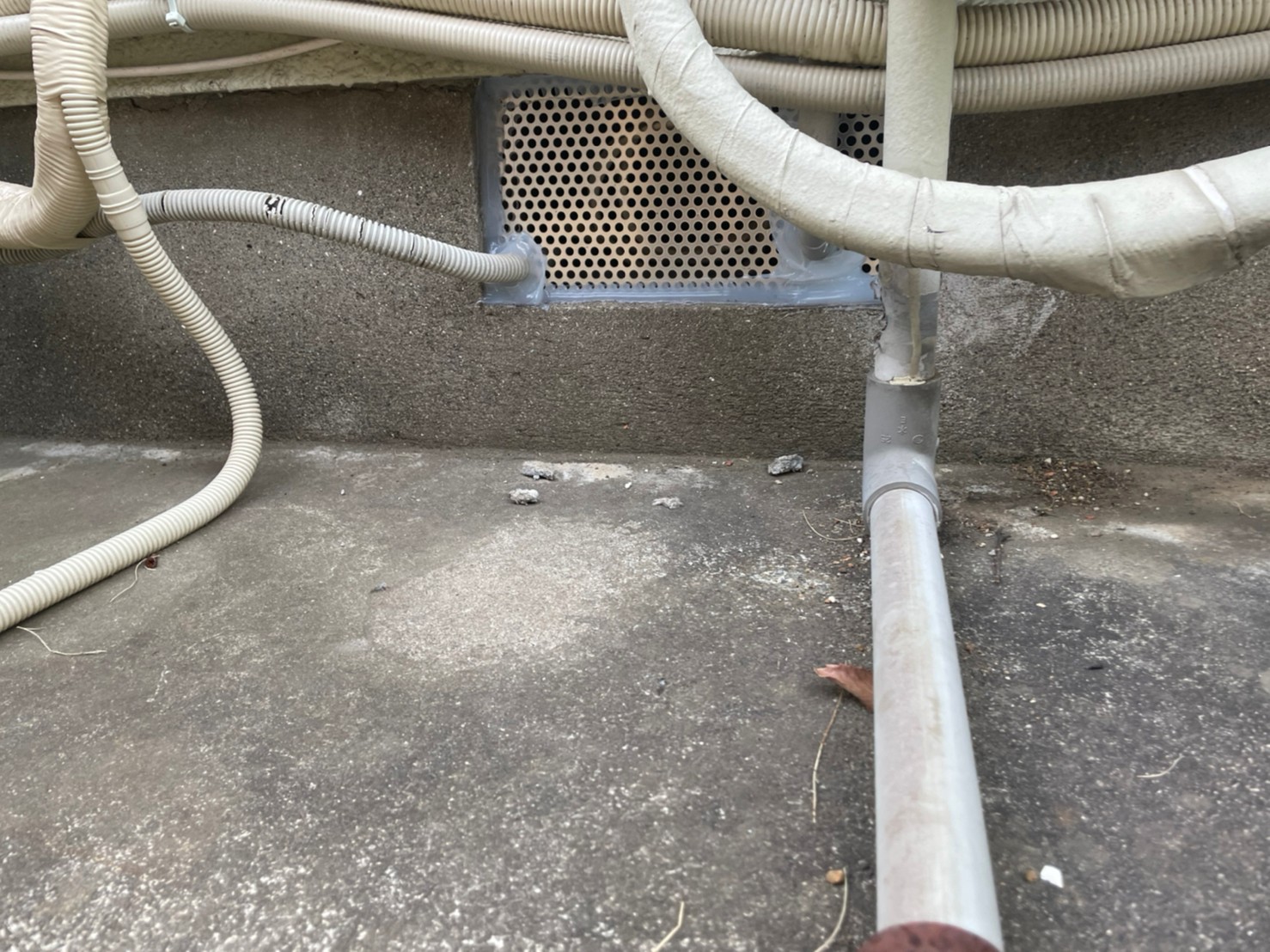 軒天の隙間や排水部、床下通風口、エアコン配管の隙間等がネズミの侵入経路と疑われました。
