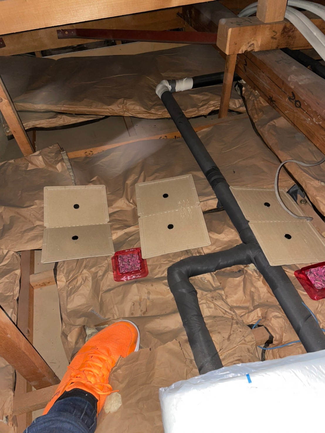 最後に、糞清掃や殺菌・消毒、マーキング消臭、ノミ・ダニ駆除、毒エサ・トラップ設置といった残りの作業を行い、駆除~再発防止までの工程が全て終了します。
