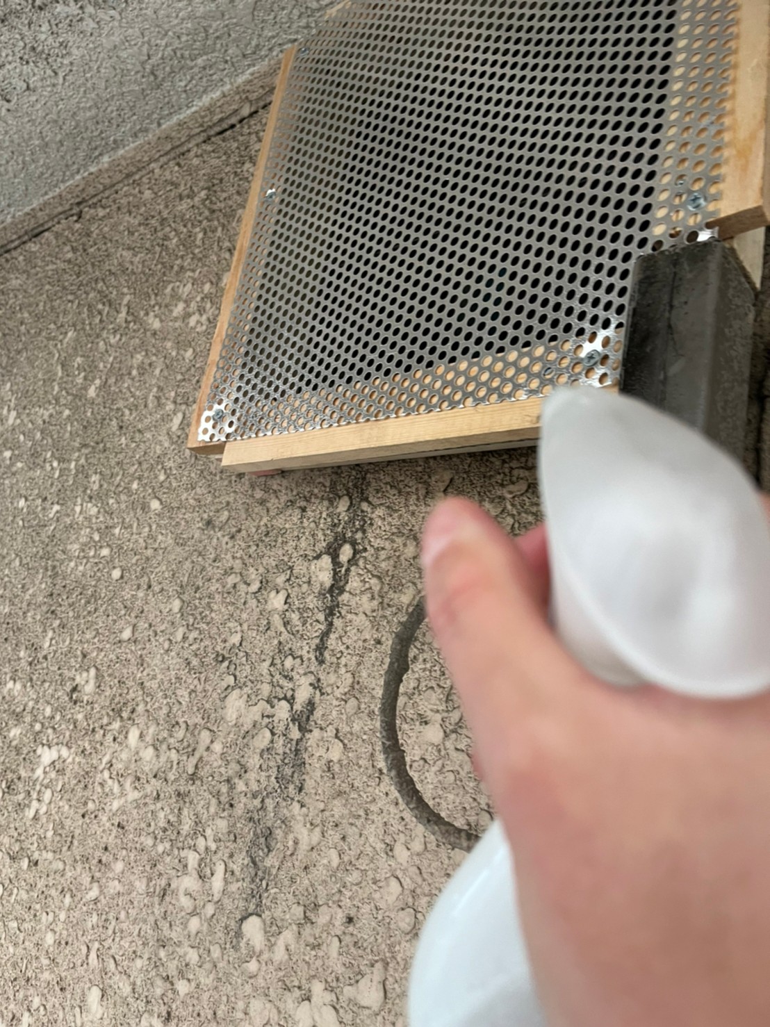 続いて、ネズミの再侵入を防ぐために、パンチングメタルや金網、コーキング剤などを用いて侵入経路の封鎖を行います。