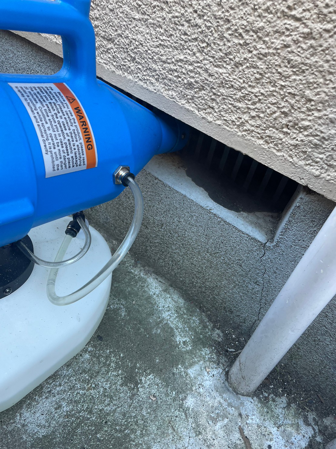 最後に、糞清掃や殺菌・消毒、マーキング消臭、ノミ・ダニ駆除、毒エサ・トラップ設置といった残りの作業を行い、駆除~再発防止までの工程が全て終了します。