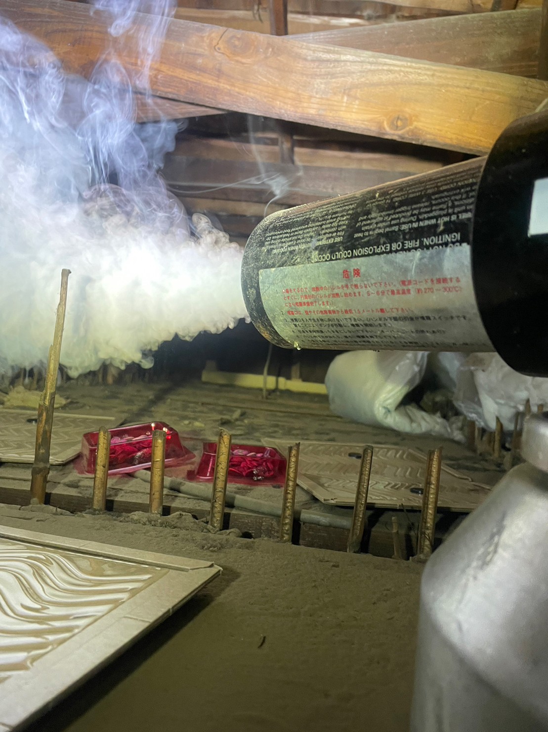 まずは、燻煙剤を使って屋内に潜んでいるネズミを追い出します。