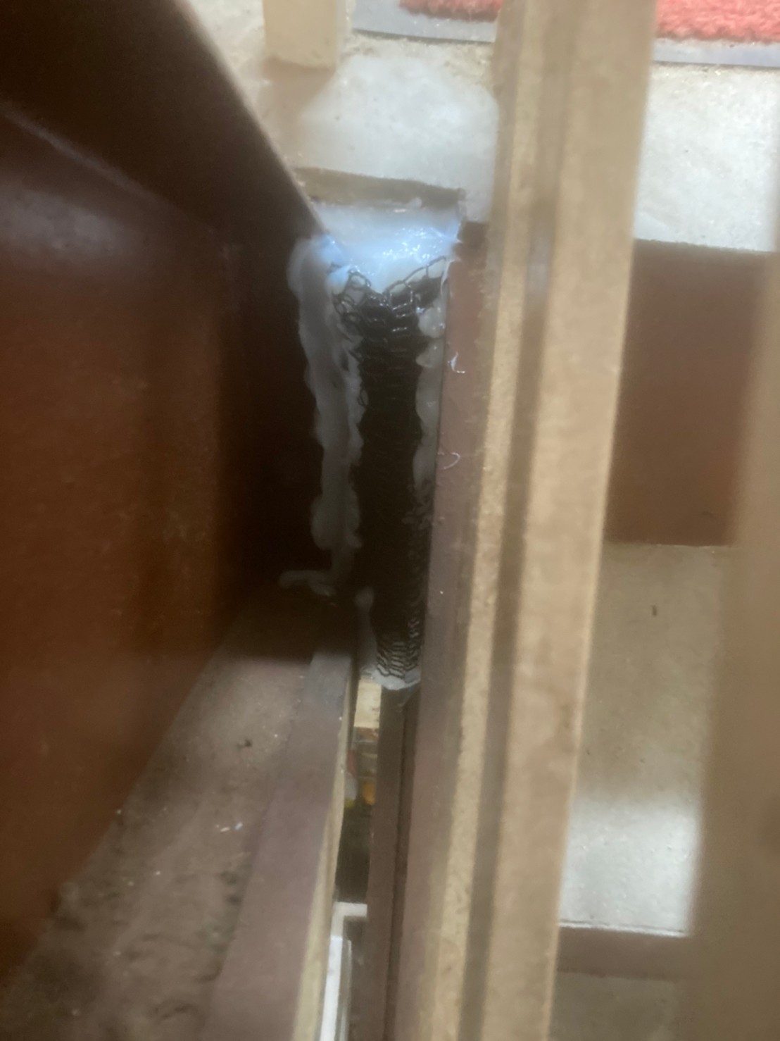 続いて、パンチングメタルや金網、コーキング剤などを用いて、あらゆる侵入経路を封鎖していきます。これによりネズミに限らず、他の害獣の再侵入も防ぐことができます。